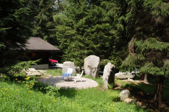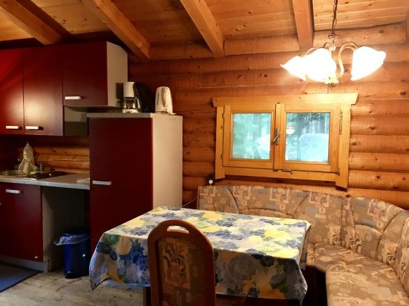 Das biologische Vollholzhaus liegt ganz alleine u. doch leicht zugänglich von der Straße in einem großen Waldgrundstück. Es ist ausgestattet mit Wohnraum, kleiner Küche, Schlafzimmer u. Bad.