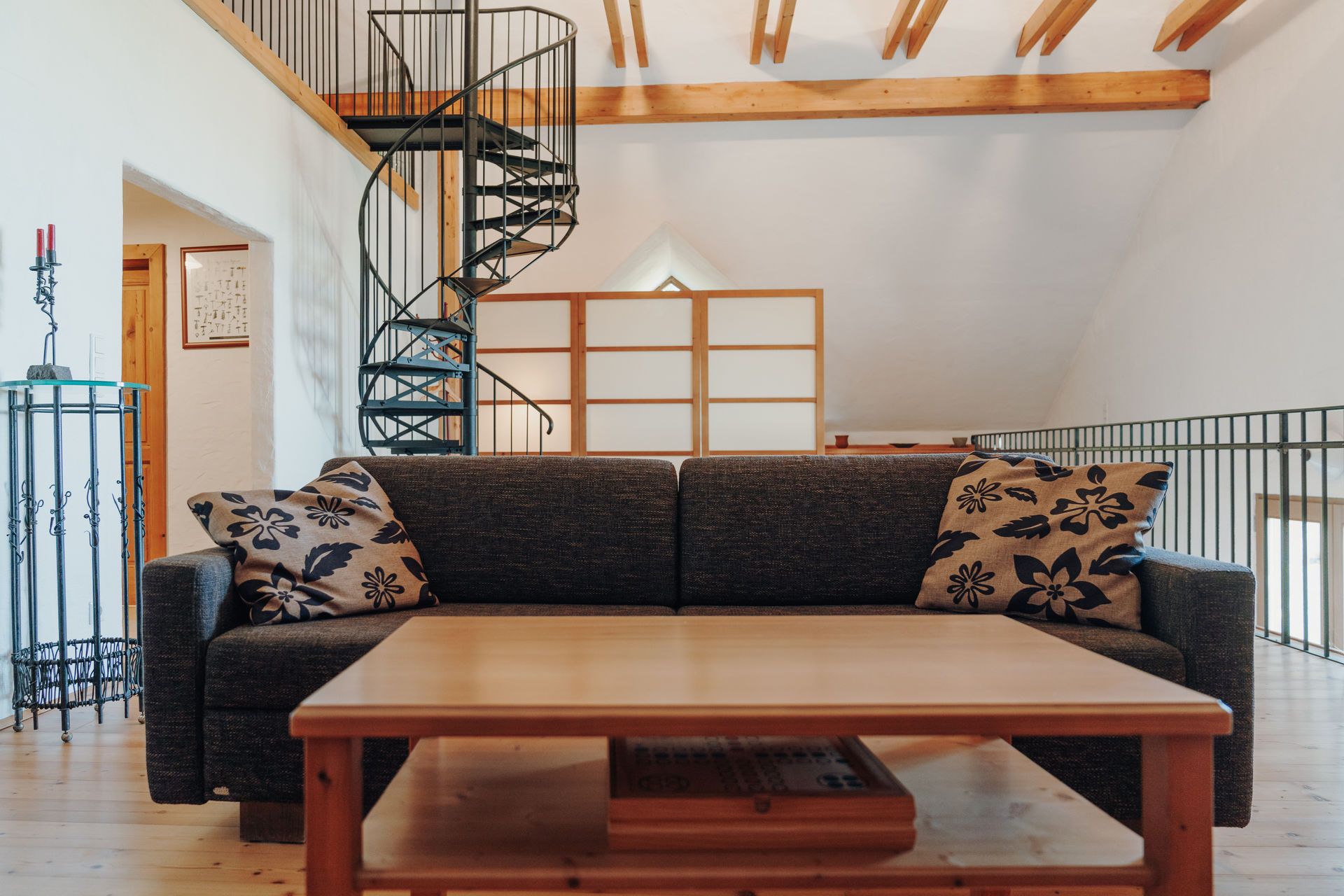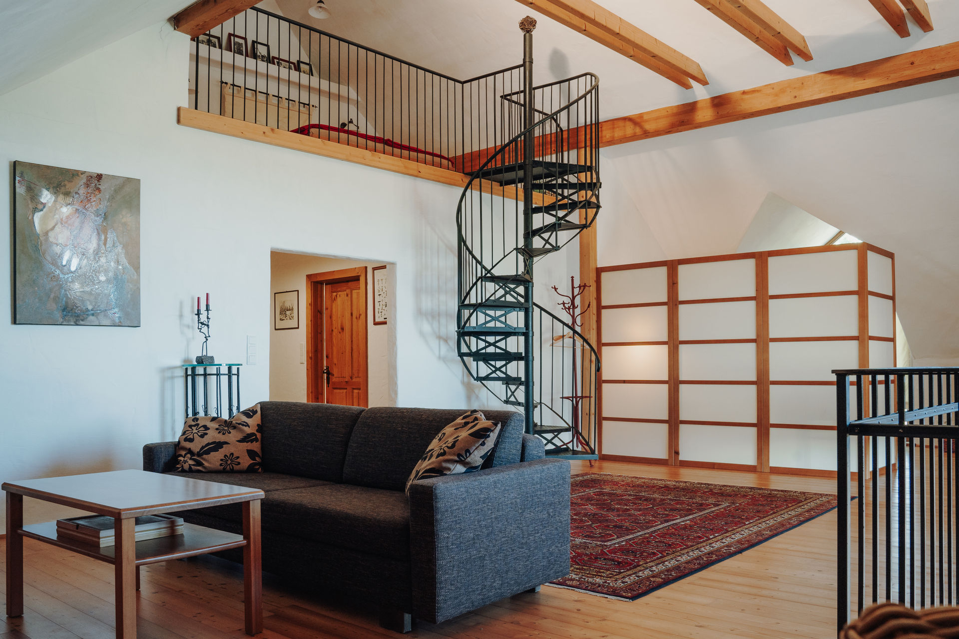 Der Ferienkeller bringt rustikales und modernes Interieur in Einklang und besticht durch Weitläufigkeit und Offenheit. Ein in den Weinkeller integrierter Wohnbereich, der großzügigen Platz zum Übernachten bietet, überrascht mit allen Annehmlichkeiten eines Urban Loft – mit dem Unterschied, dass sich die Gäste mitten im Grünen und fern jeglicher Lärm- und Stressquelle befinden.