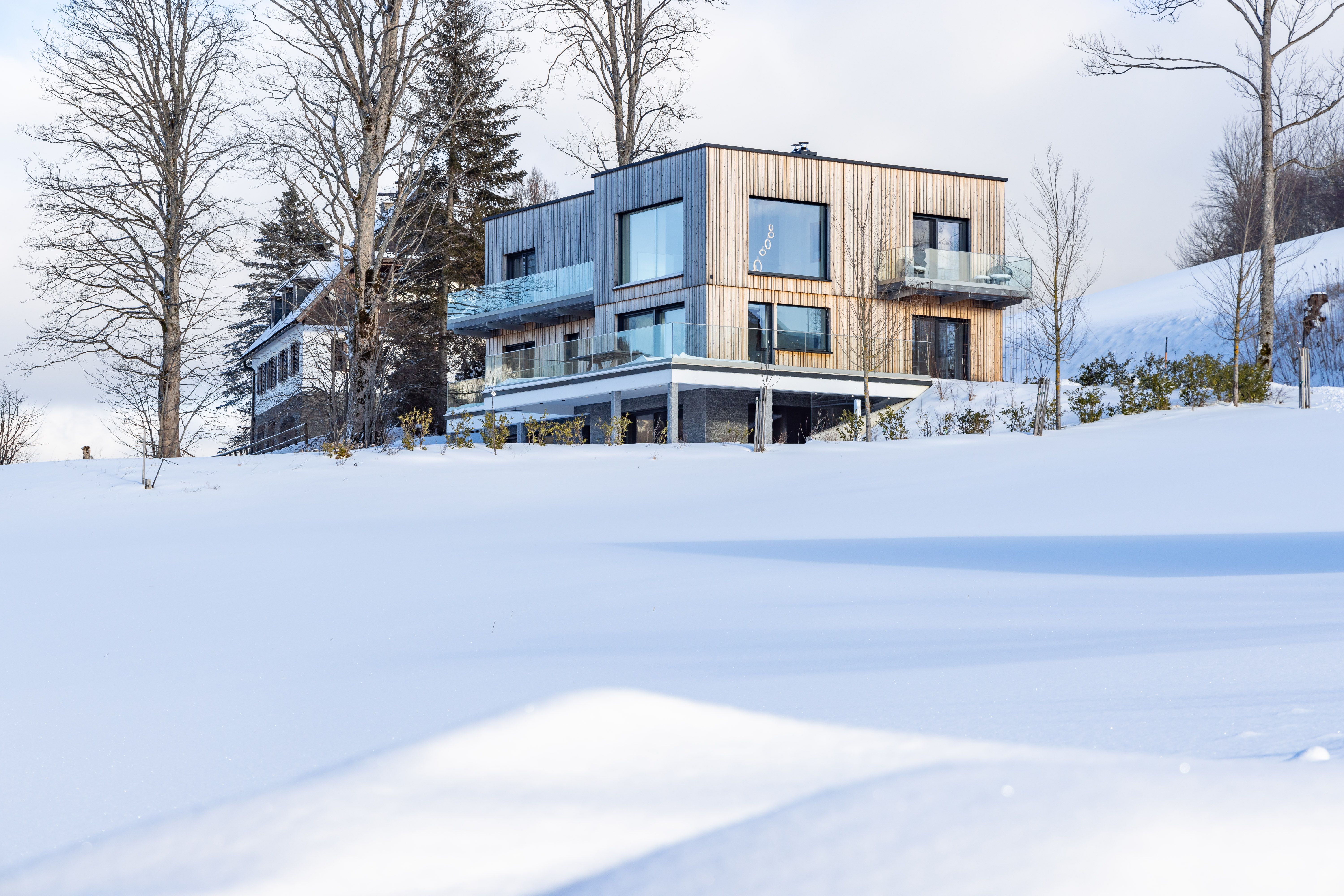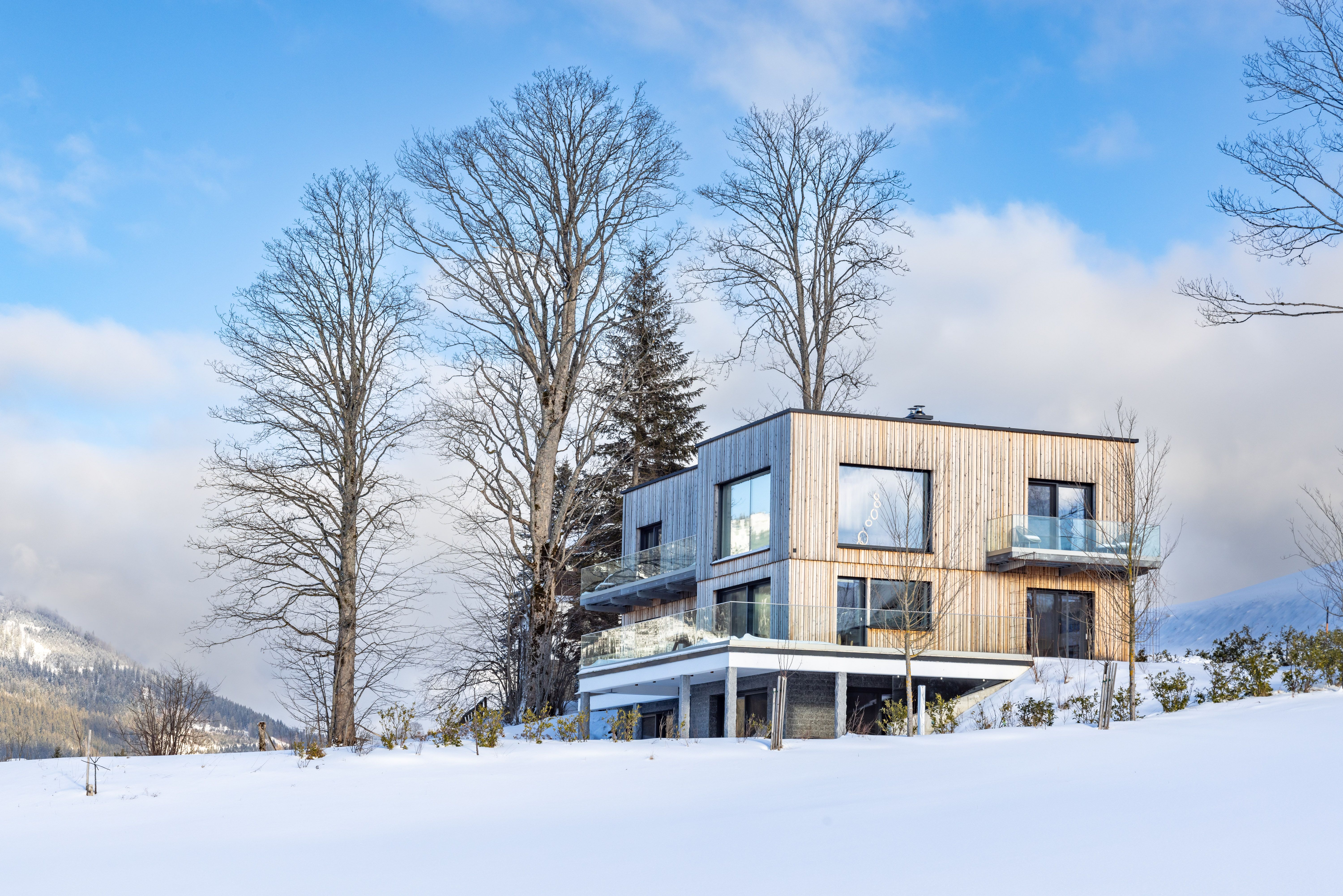 Die Ferienvilla Joachimsberg punktet mit einer harmonischen Kombination aus Holz und Stein und ihrer einzigartigen Lage inmitten einer traumhaften Naturlandschaft. Das große Panoramafenster macht einen atemberaubenden Blick auf den Ötscher frei.