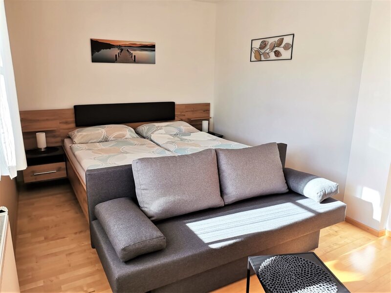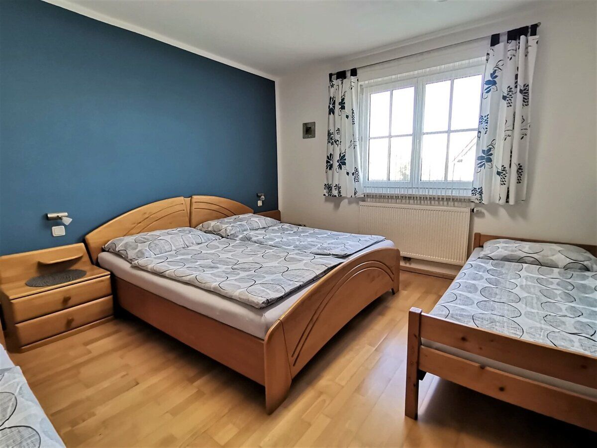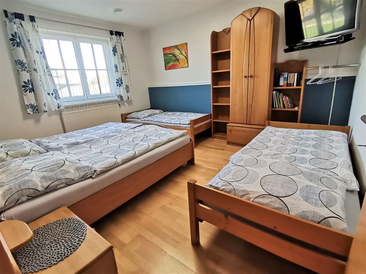 Ferienwohnung (1-6 Personen) mit einem Gesamtausmaß von 80 m². Die Ferienwohnung beinhaltet ein Doppelzimmer und ein Familienzimmer mit vier Betten, die auch einzeln buchbar sind.
