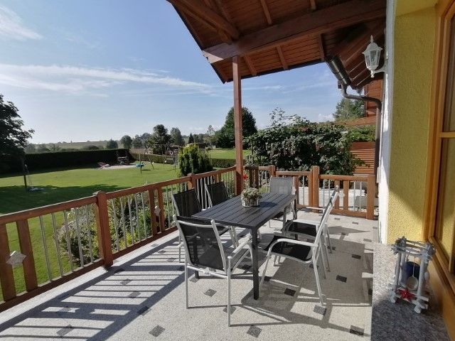 Die großzügige, überdachte Terrasse lädt zum Entspannen in der freien Natur ein.