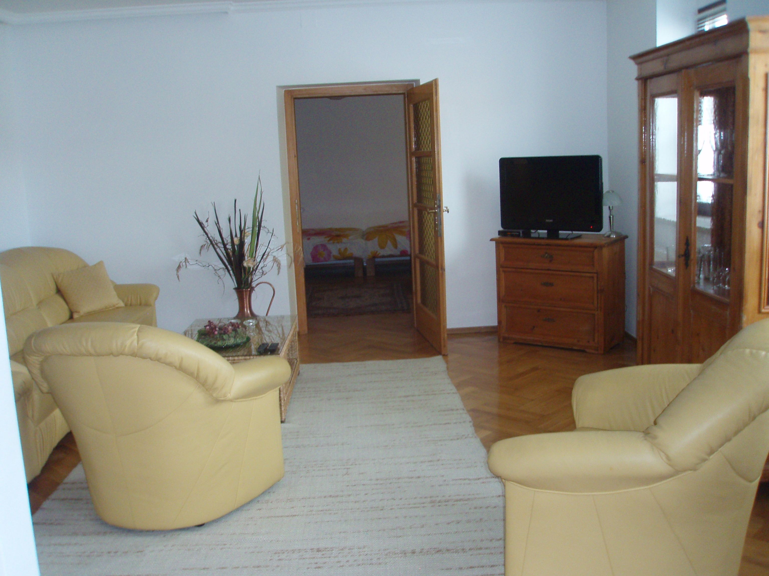 Wohnung ca. 100 qm, 4 mögliche Schlafzimmer, Küche (komplett mit Geschirr, Töpfe, Pfannen, Kühlschrank, Ceranfeld-Herd, Mikrowelle und Geschirrspüler, Kaffeemaschine, Wasserkocher, Toaster, Mixer, Bügeleisen, Bügelbrett ausgestattet), SAT Fernsehen; WLAN inkl., Babybett zustellbar