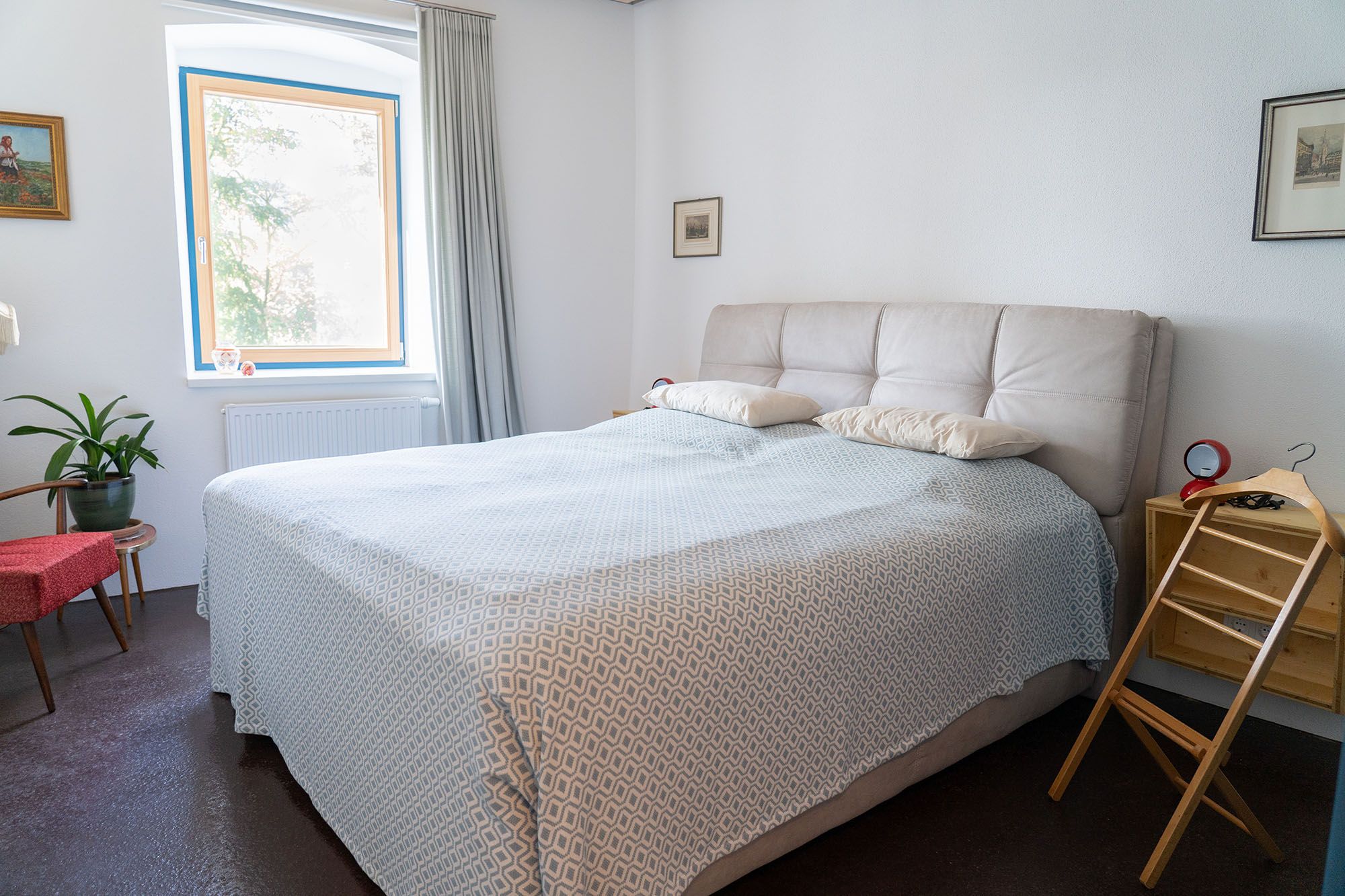 In ähnlicher Haltung haben wir die Zimmer möbliert. Der Komfort, den etwa die Betten oder die Sanitäranlagen bieten, entspricht selbstverständlich heutiger Technik. Die Stimmung der Räume aber basiert auf dem Wissen, dass dem Umgang mit Farbe, Licht, Material oder Handwerkskunst keine Jahreszahlen eingeschrieben sind. So haben alle Räume ihren eigenen Charakter bekommen, in dem auch Kunst und Literatur eine nicht zu kleine Rolle spielen.