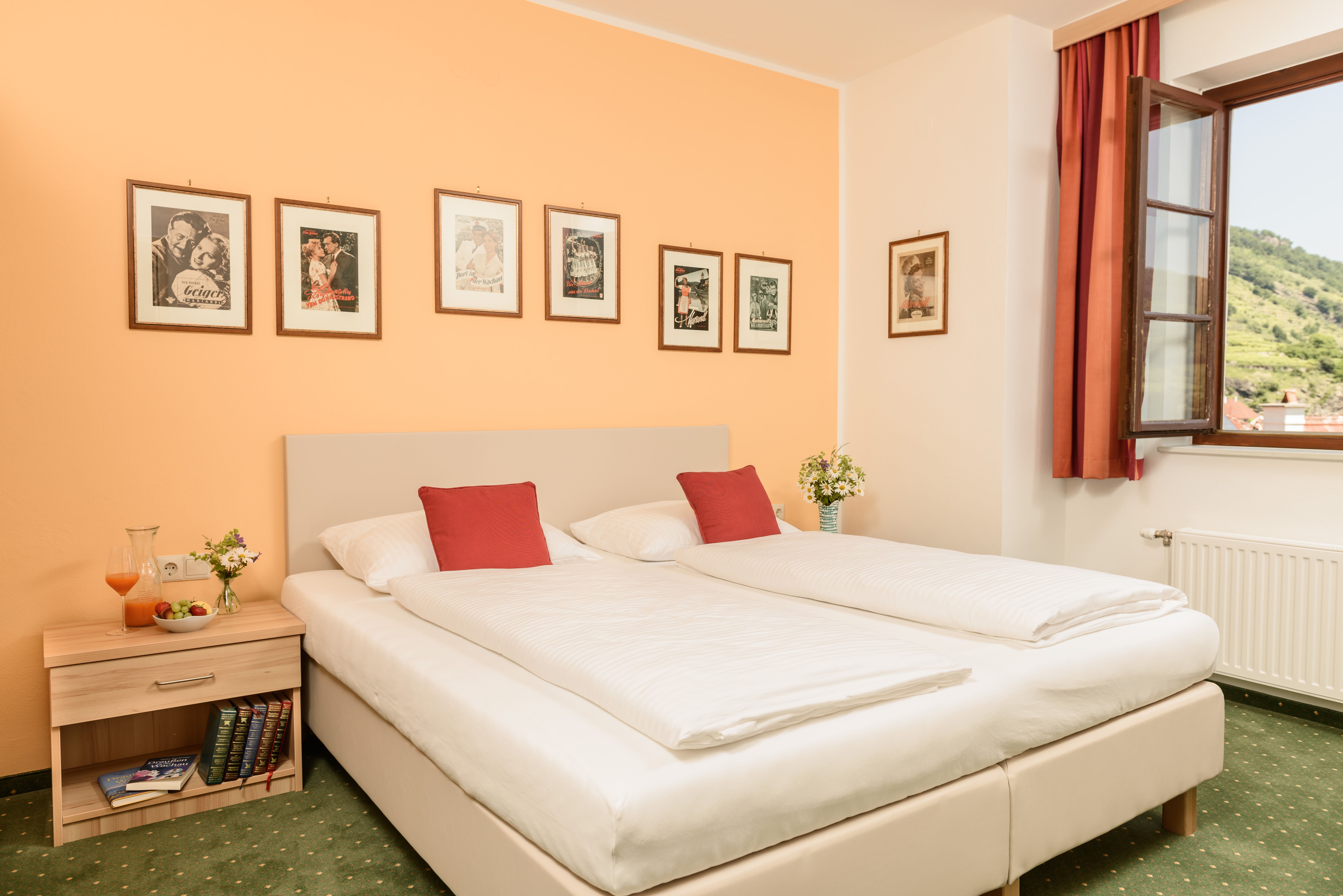 Klein und fein: 18 Betten in eingerichteten, komfortablen Doppelzimmern, geräumigen Suiten mit Balkon/Terrasse und zwei Nostalgiezimmern, ausgestattet mit liebevoll restaurierten Möbeln aus Historismus und Jugendstil.