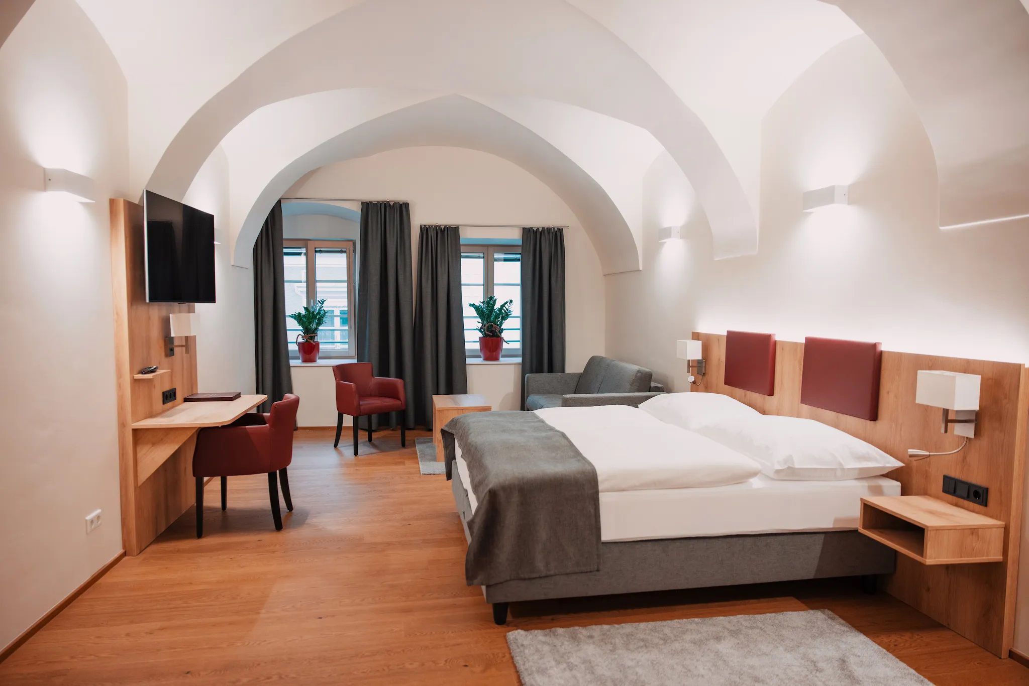 Zur Auswahl stehen verschiedene Zimmertypen, u. a. Einzel- und Doppelzimmer sowie Mehrbett- und Familienzimmer mit Frühstück. Der Gasthof bietet darüber hinaus attraktive Annehmlichkeiten für Radfahrer: sichere Abstellplätze, Fahrradverleih und direkte Lage am Donauradweg, bestens geeignet für Touren in die Wachau und im Nibelungengau.
