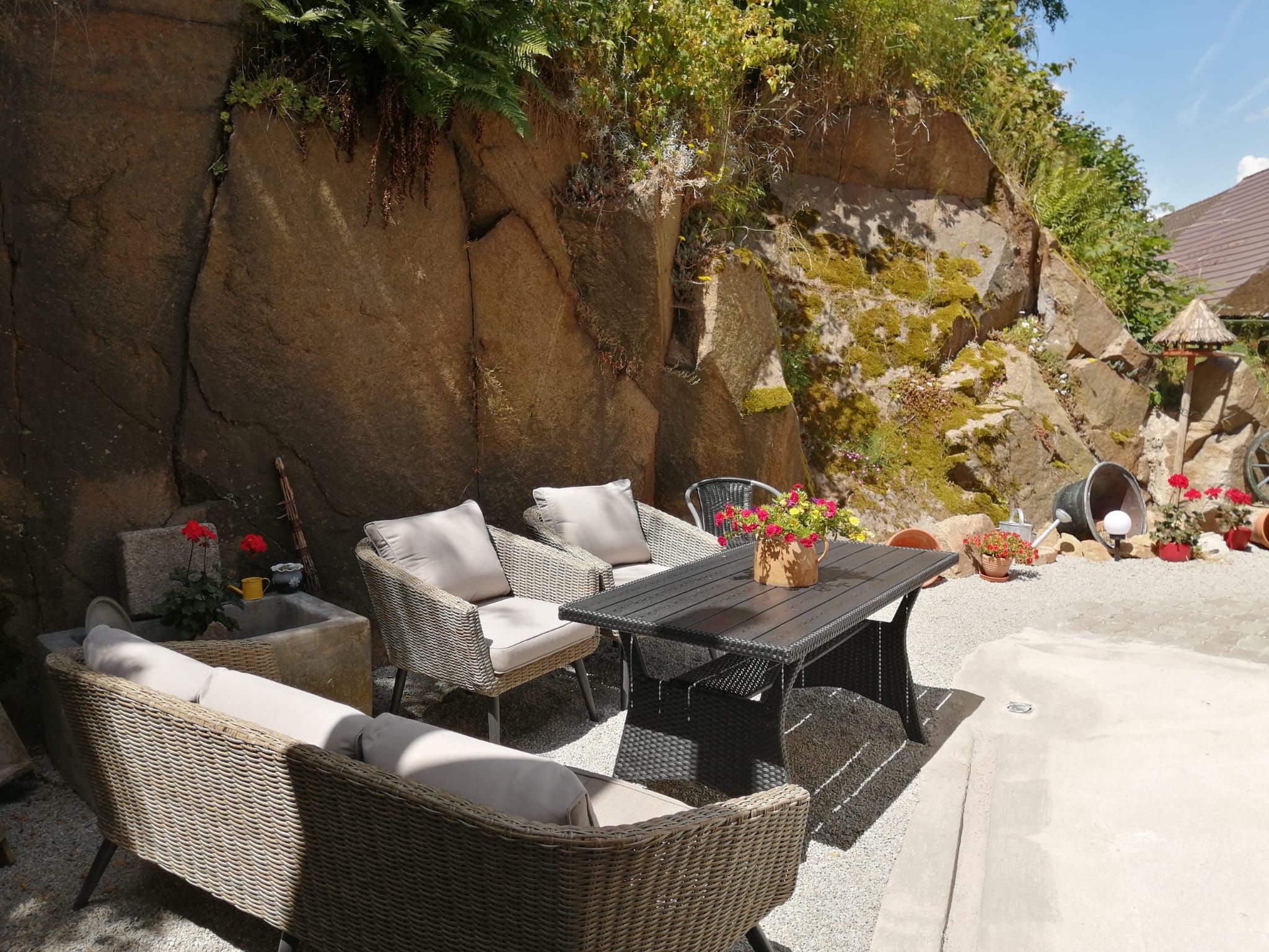 1. Appartement (35m2) im EG für 2-4 Personen, Doppelbett (160cm), Schlafsofa (140cm) mit Bettwäsche, Küche komplett ausgestattet, Badezimmer mit WC inkl. Badetücher, Föhn etc.