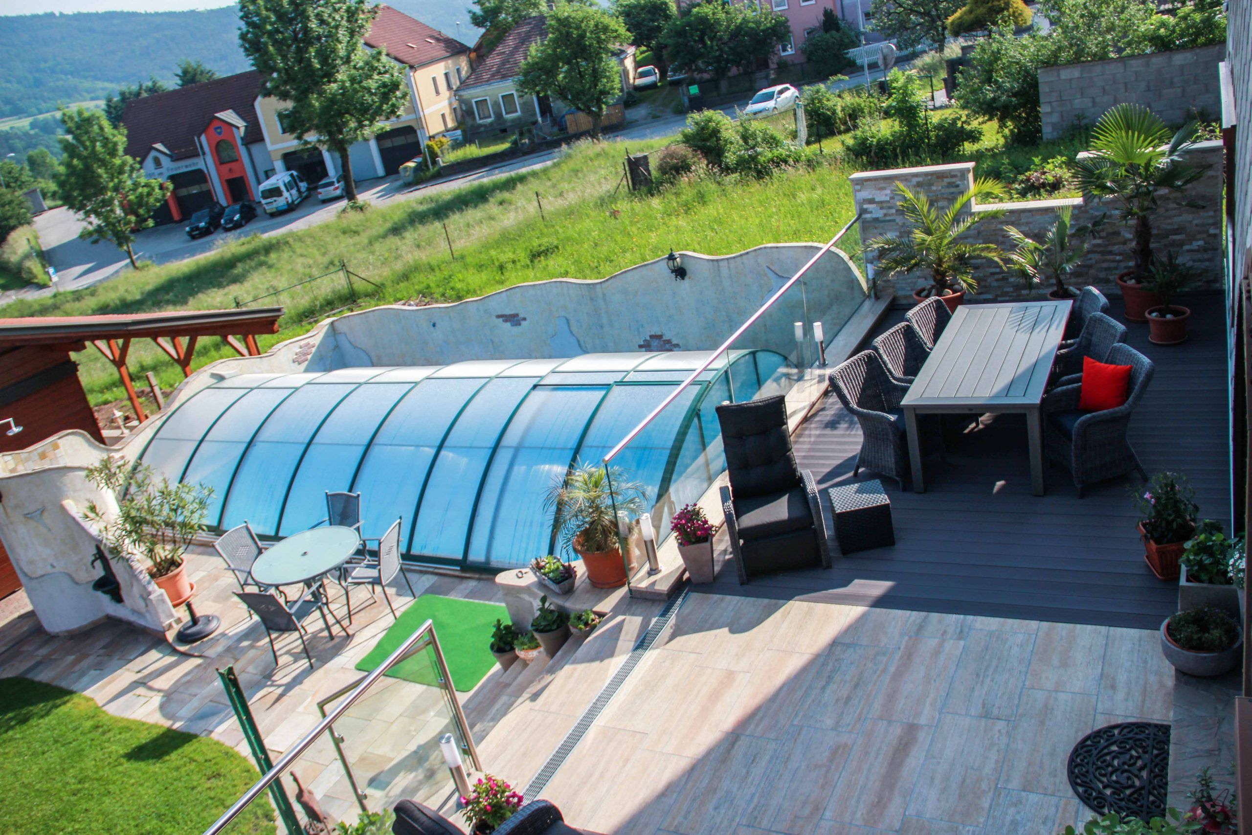 Der große, ruhige Garten lädt zum Verweilen ein und verfügt über einen überdachten Außenpool (8 x 4 m), der besonders an warmen Tagen für Erfrischung sorgt. Kostenloses WLAN ist im gesamten Haus verfügbar, und für die Gäste stehen kostenlose Parkplätze zur Verfügung.