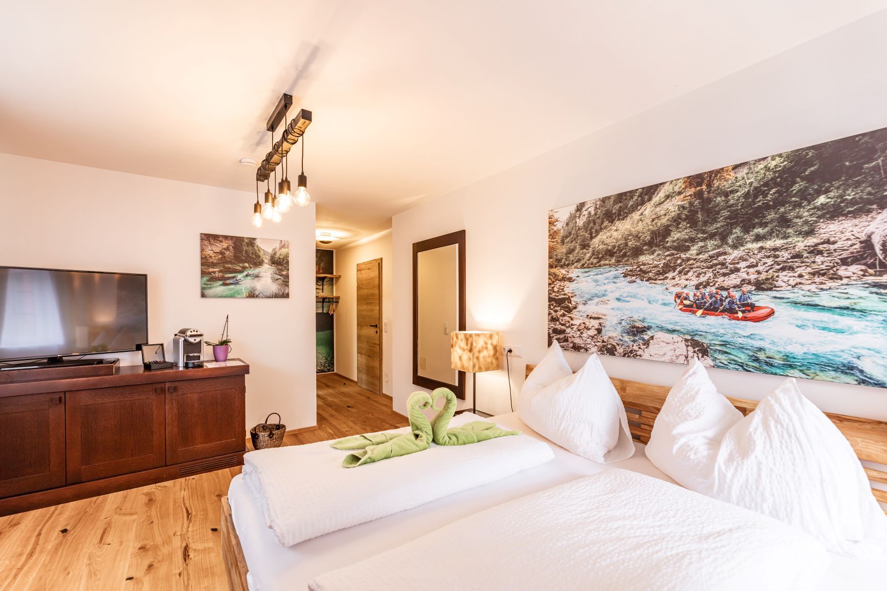 Türkisblaues Wasser, paradiesische Schluchten und malerische Felsformationen, in diesem Zimmer fühlt man sich fast wie im Raftboot. Besser noch, hier sitzt es sich gemütlicher und es duscht sich wärmer.