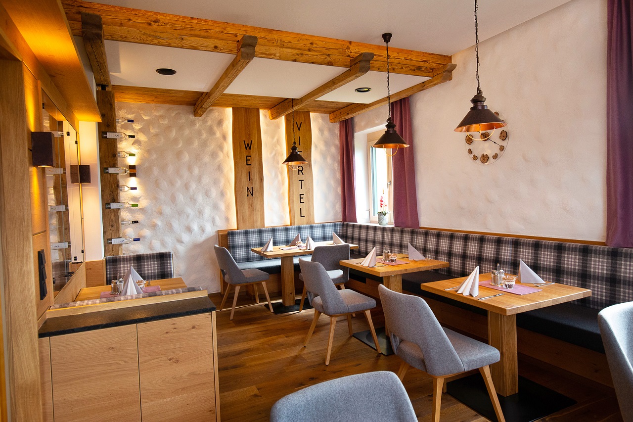 Das Restaurant serviert regionale und saisonale Spezialitäten. In den Sommermonaten wird es besonders gemütlich, denn dann wird auf die Sonnenterrasse eingeladen, wo die hauseigenen Weine in stimmungsvoller Atmosphäre genießen werden können.