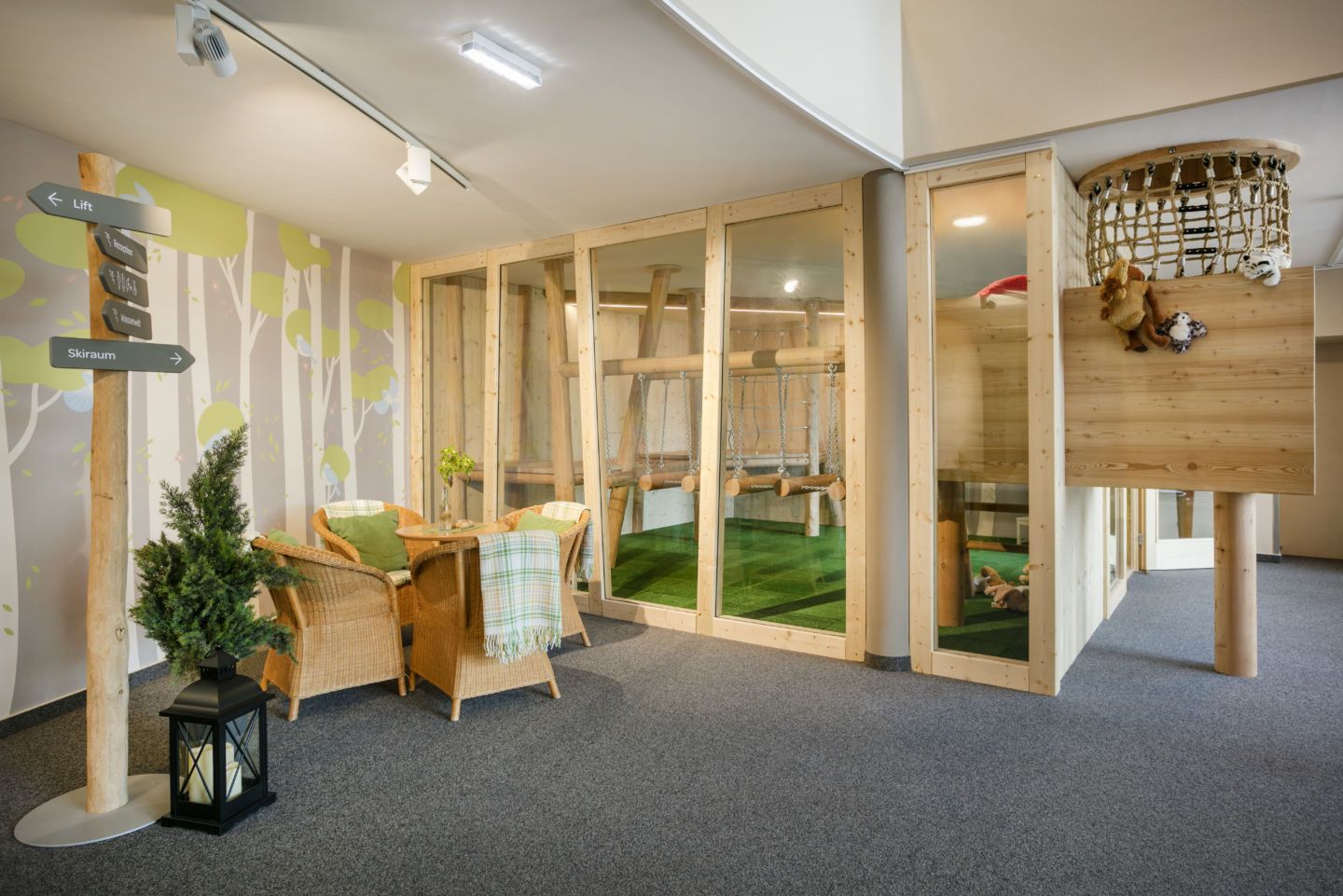 Entdecken Sie das Freiluftklassenzimmer – seine graue Zellen kann man hier trainieren. Oder toben Sie mit den Kids auf der großen Spielwiese am Waldesrand, hier lässt sich doch bestimmt das eine oder andere Abenteuer bestehen. Das Familienhotel bietet außerdem einen großzügigen Outdoorbereich mit Volleyball- und Fußballfeld und einer tollen Flying Fox-Anlage. Innen gibt´s ein Spielzimmer mit Billard, Tischfußball und Dartscheibe, bei zwei Kegelbahnen heißt es dann in der geselligen Runde “Alle Neune”!
