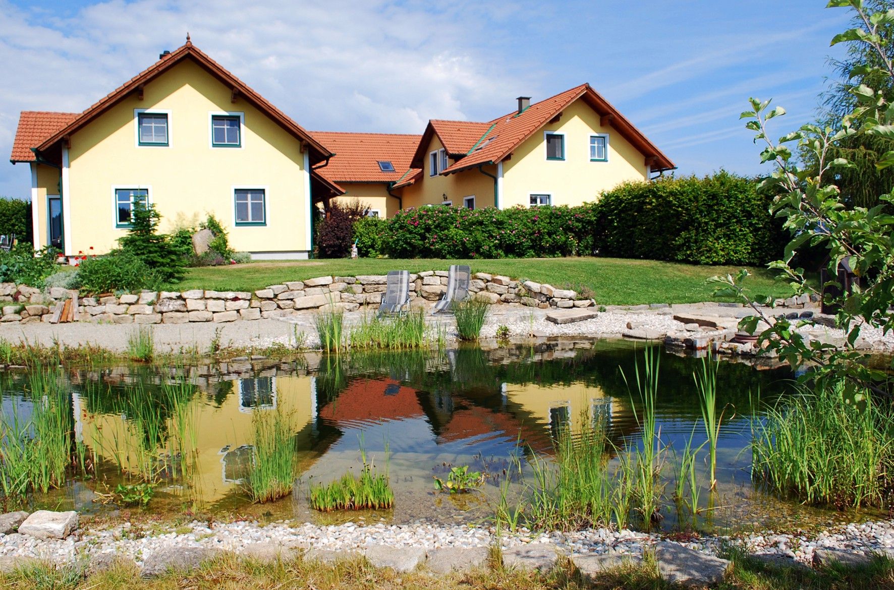 Abseits von Hektik lädt Ihre Gastgeberin, Frau Fraißl, Sie ein im großen Garten zu relaxen oder im hauseigenen Schwimmteich zu schwimmen.