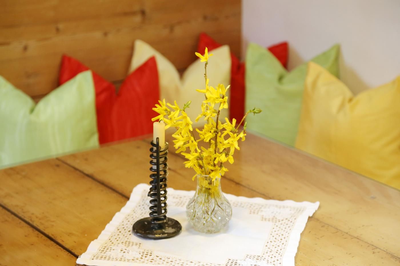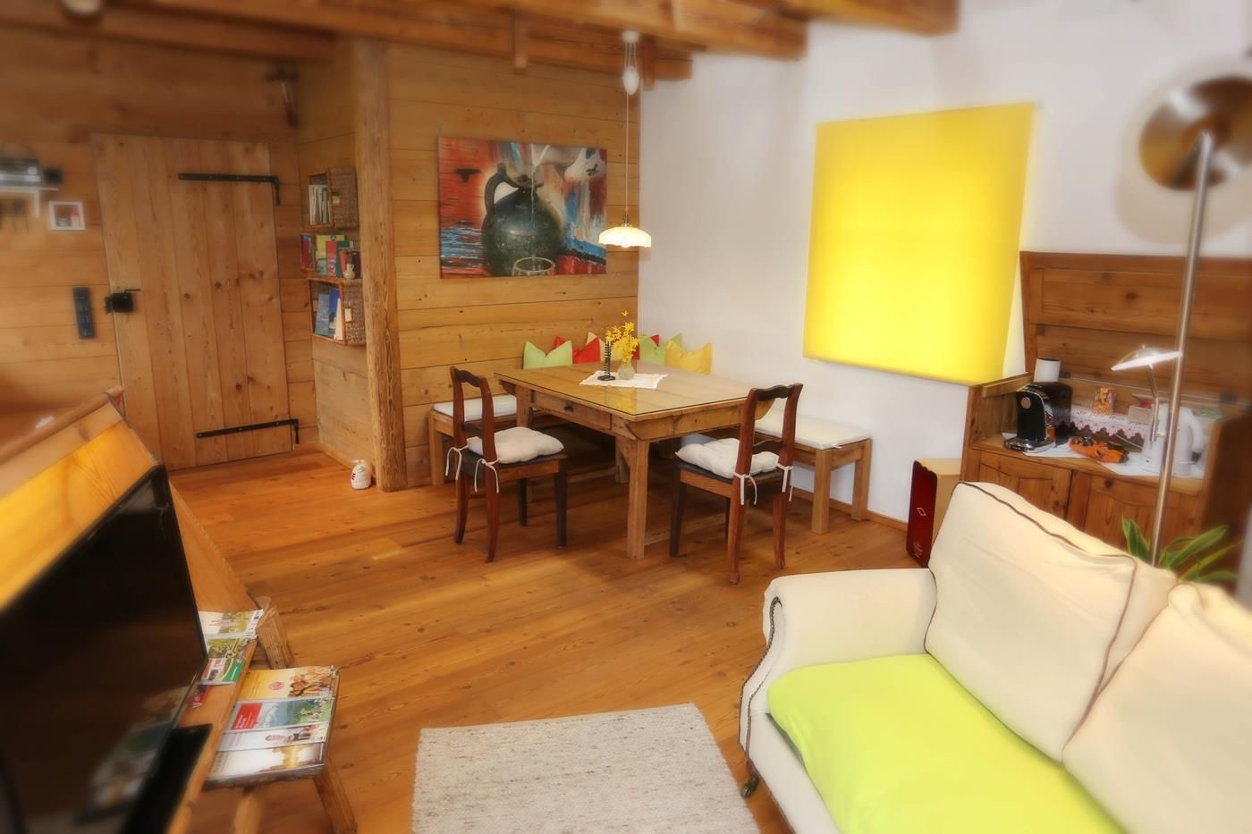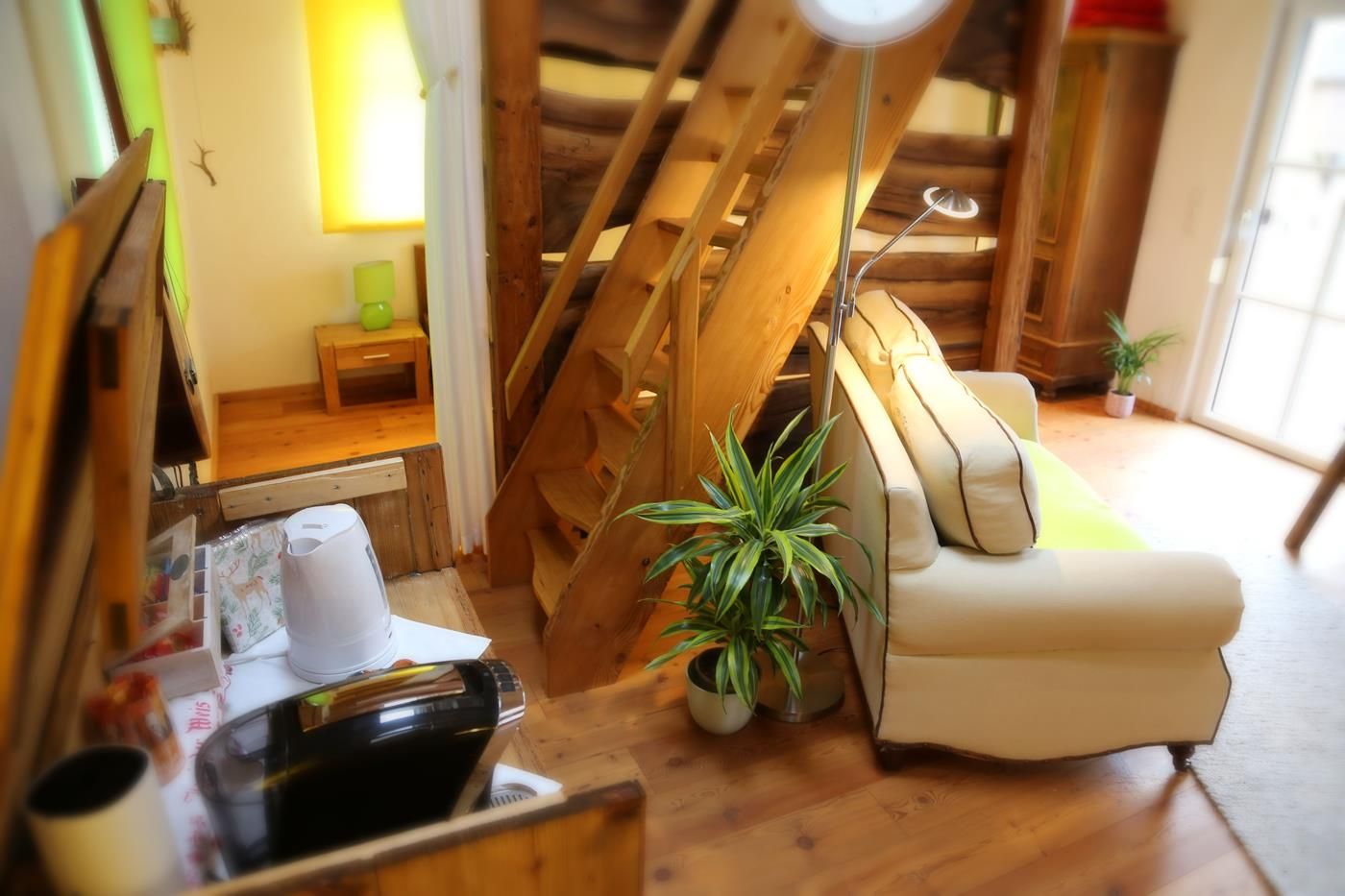 Die Ferienwohnung befindet sich im "Kellerstöckl" - Nebengebäude - über dem alten Mostkeller. Es ist eine Einraumwohnung mit 2 Zusatzbetten und einem Matratzenlager im Dachausbau (Zusatzbetten und Matratzenlager nur über eine Platzspartreppe erreichbar). Das „Kellerstöckl“ liegt mitten im Bauerndorf, umgeben von 3 Vierkanthöfen und freiem Blick nach Süden in die Streuobstwiese. 2 Terrassen (südlich und östlich).