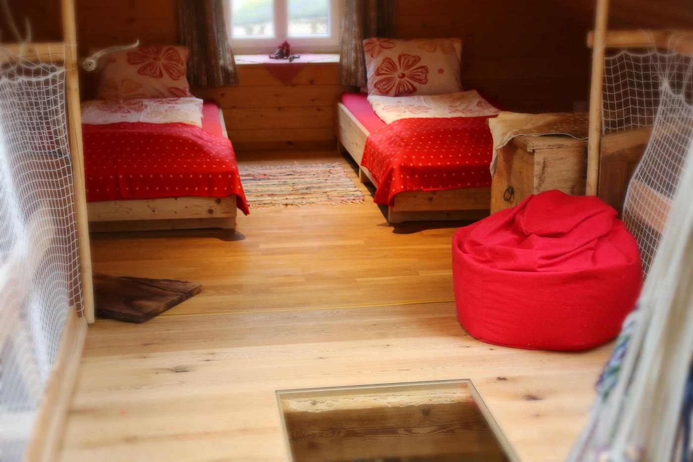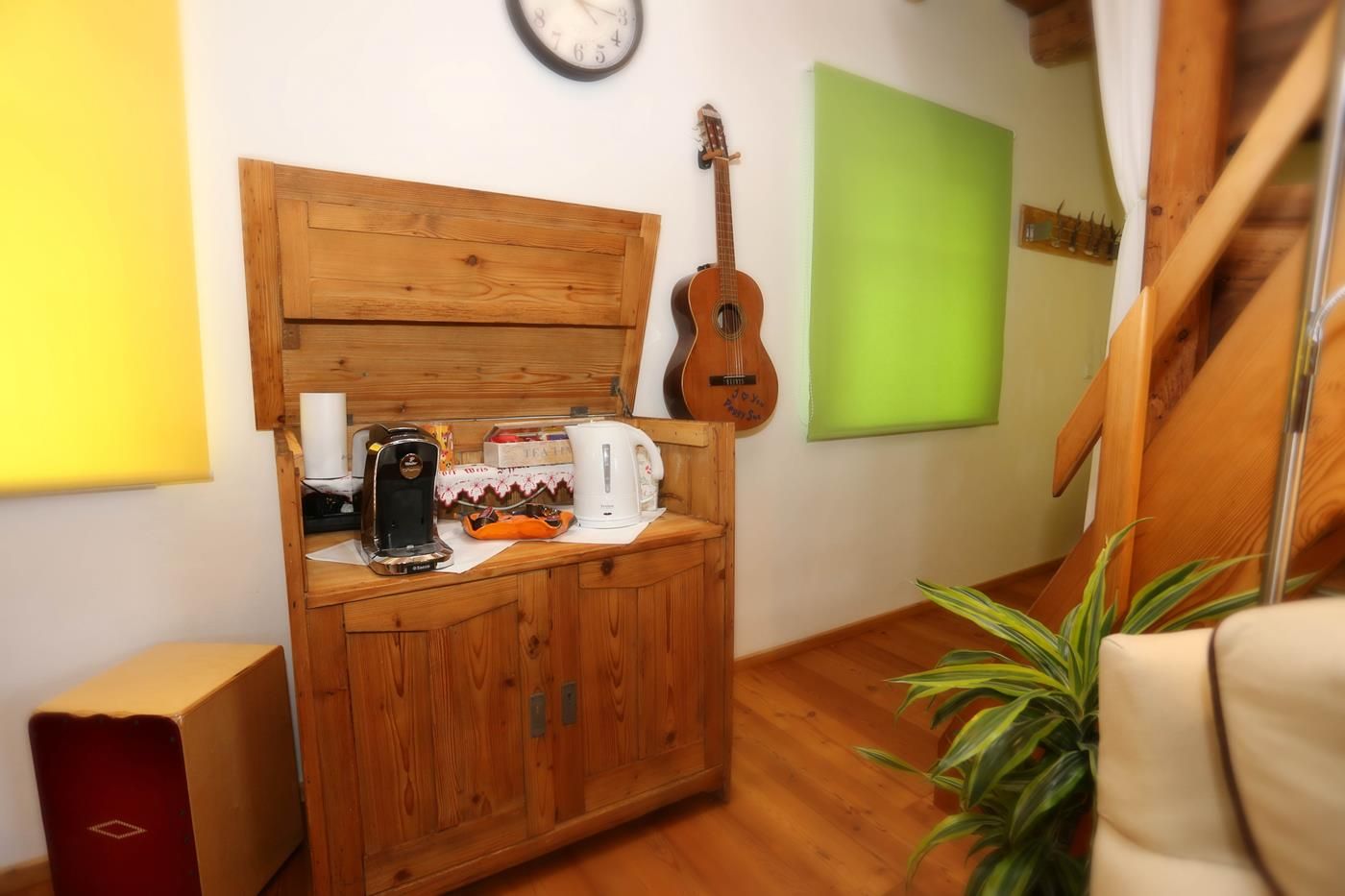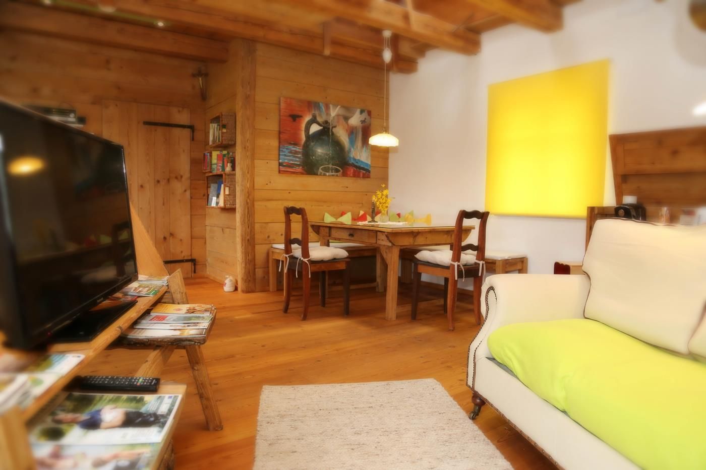 Die Ferienwohnung befindet sich im "Kellerstöckl" - Nebengebäude - über dem alten Mostkeller. Es ist eine Einraumwohnung mit 2 Zusatzbetten und einem Matratzenlager im Dachausbau (Zusatzbetten und Matratzenlager nur über eine Platzspartreppe erreichbar). Das „Kellerstöckl“ liegt mitten im Bauerndorf, umgeben von 3 Vierkanthöfen und freiem Blick nach Süden in die Streuobstwiese. 2 Terrassen (südlich und östlich).