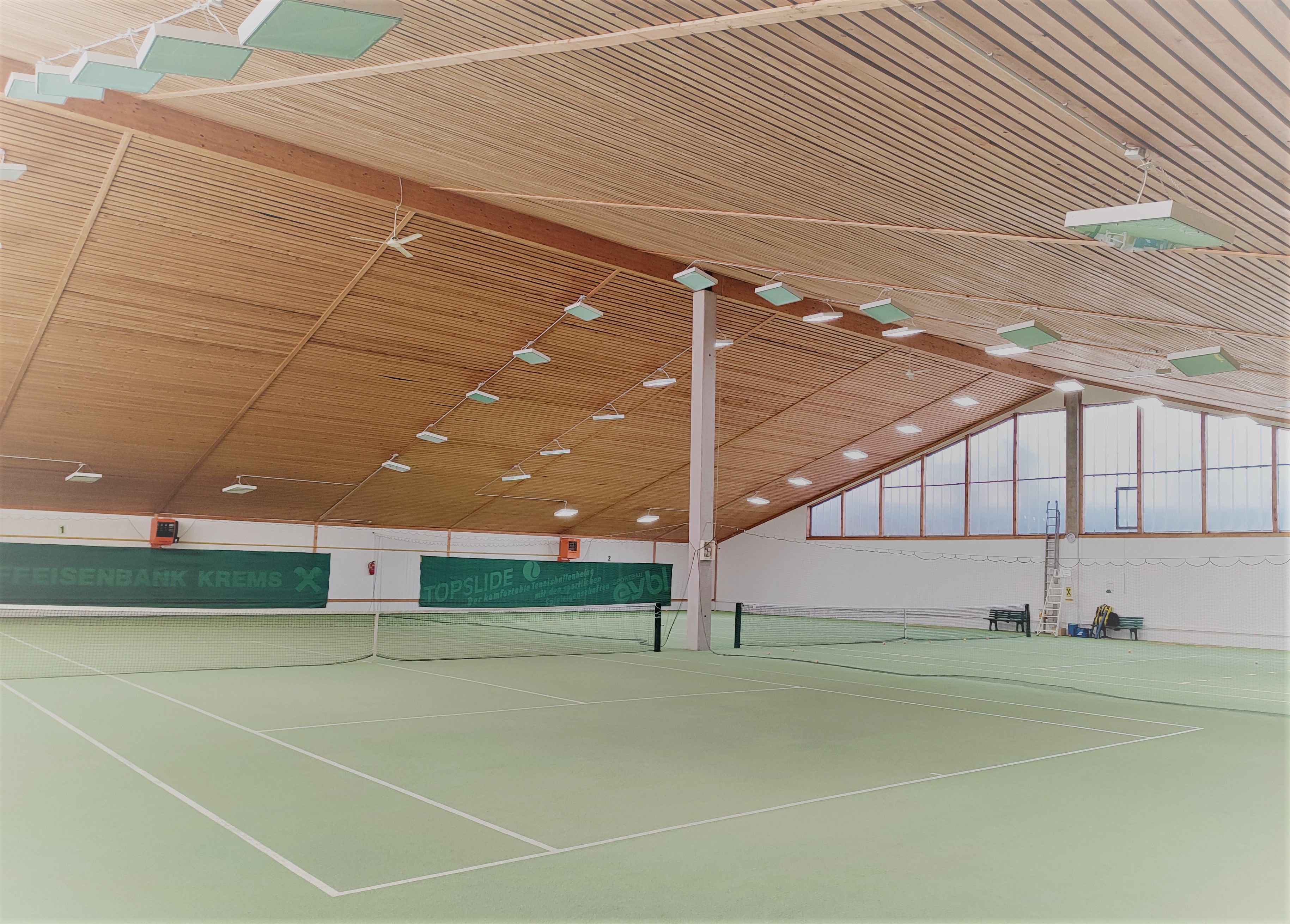 Direkt vor Ort bietet sich die Möglichkeit auf unseren 2 Freiplätzen auf Quarzsand und den 2 Hallenplätzen auf Teppichbelag mit Gummigranulat Tennis zu spielen.