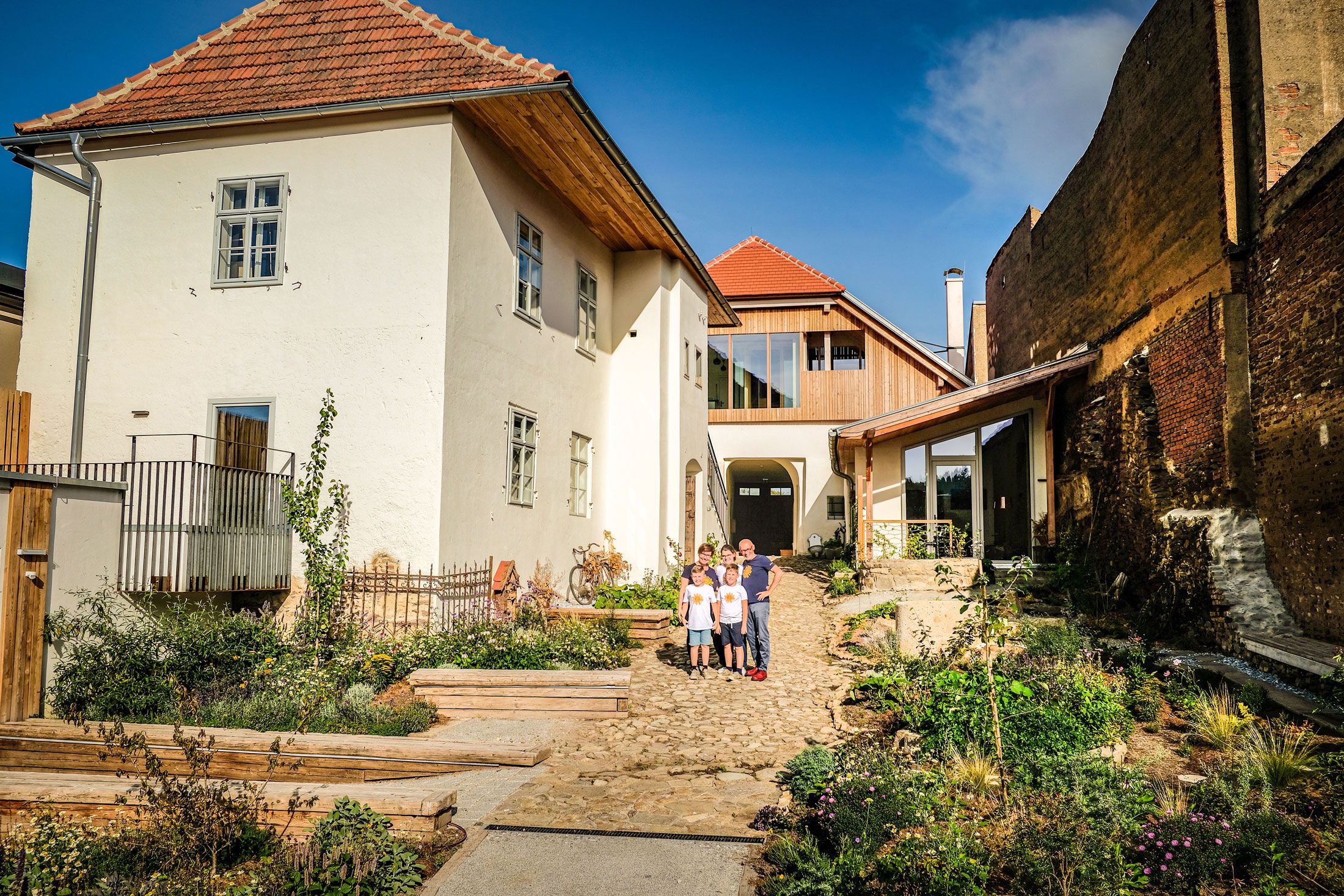 …ein Haus an der Zwettler Stadtmauer. Über die Jahrhunderte war es das Zuhause vieler Menschen und Geschichten. Nun wurde den alten Mauern neues Leben eingehaucht. 5 gemütliche Ferienwohnungen laden zu erlebnisreichem Übernachten mitten in der Stadt Zwettl ein. Wer das große hölzerne Eingangstor in der Landstraße 53 öffnet, den begrüßt ein eindrucksvoller Blick auf historische Mauern und ein blühender Naturgarten im Innenhof. Umschlossen wird der Garten von der Zwettler Stadtmauer, die mit einem Aussichts-Steg dazu einlädt, den Blick über das Zwettltal schweifen zu lassen. Mit einer Größe von 23 bis 79 m2 bieten sie Platz für 1 bis 7 Personen. Moderne, mit Liebe zum Detail gestaltete Räume und Bereiche sowie natürliche Materialien sorgen für Ruhe, Entspannung und Wohlgefühl. Dorli Damals, Rusti-Karl, Sieglinde Schwarz, Rosa und Rudi Retro – so heißen die 5 Stadt-Lofts. Wie ihre Namen bereits erahnen lassen, empfängt jede Wohnung ihre Gäste mit eigenem Stil. Das ist aber noch längst nicht alles. „Hereinspaziert“ heißt es im Willkommensraum, der Gäste im Urlaub und im Haus ankommen lässt. Die Gemeinschaftsküche „Aufgetischt“ lädt zum Ausprobieren und gemütlichen Beisammensein ein, ein Seminarraum lässt mit Weitblick Neues entdecken.