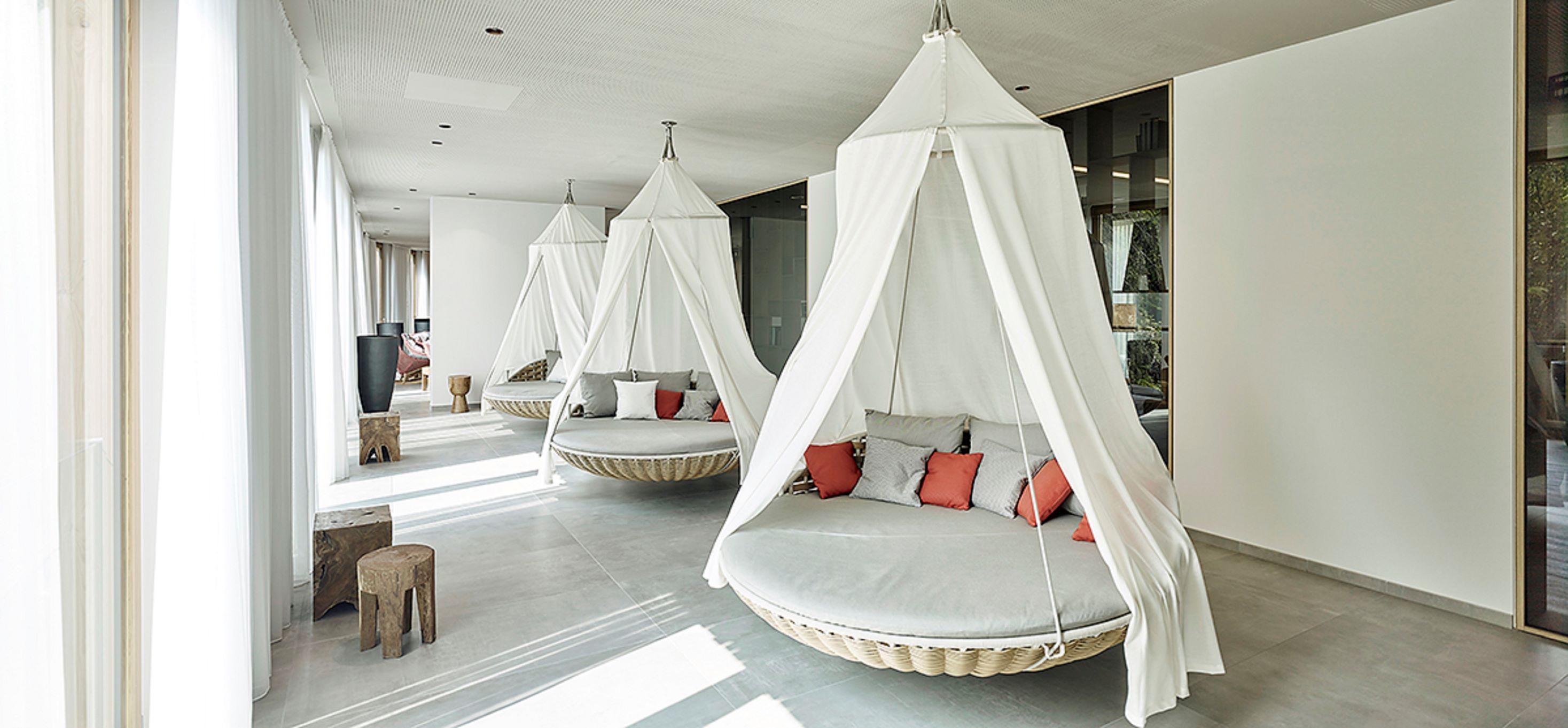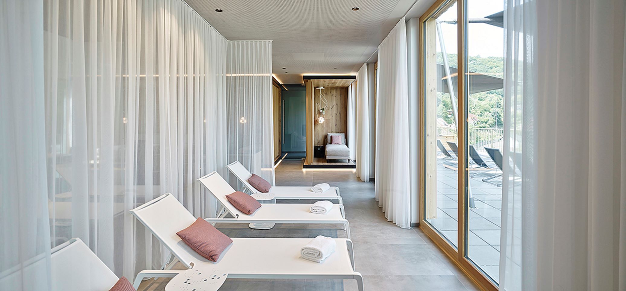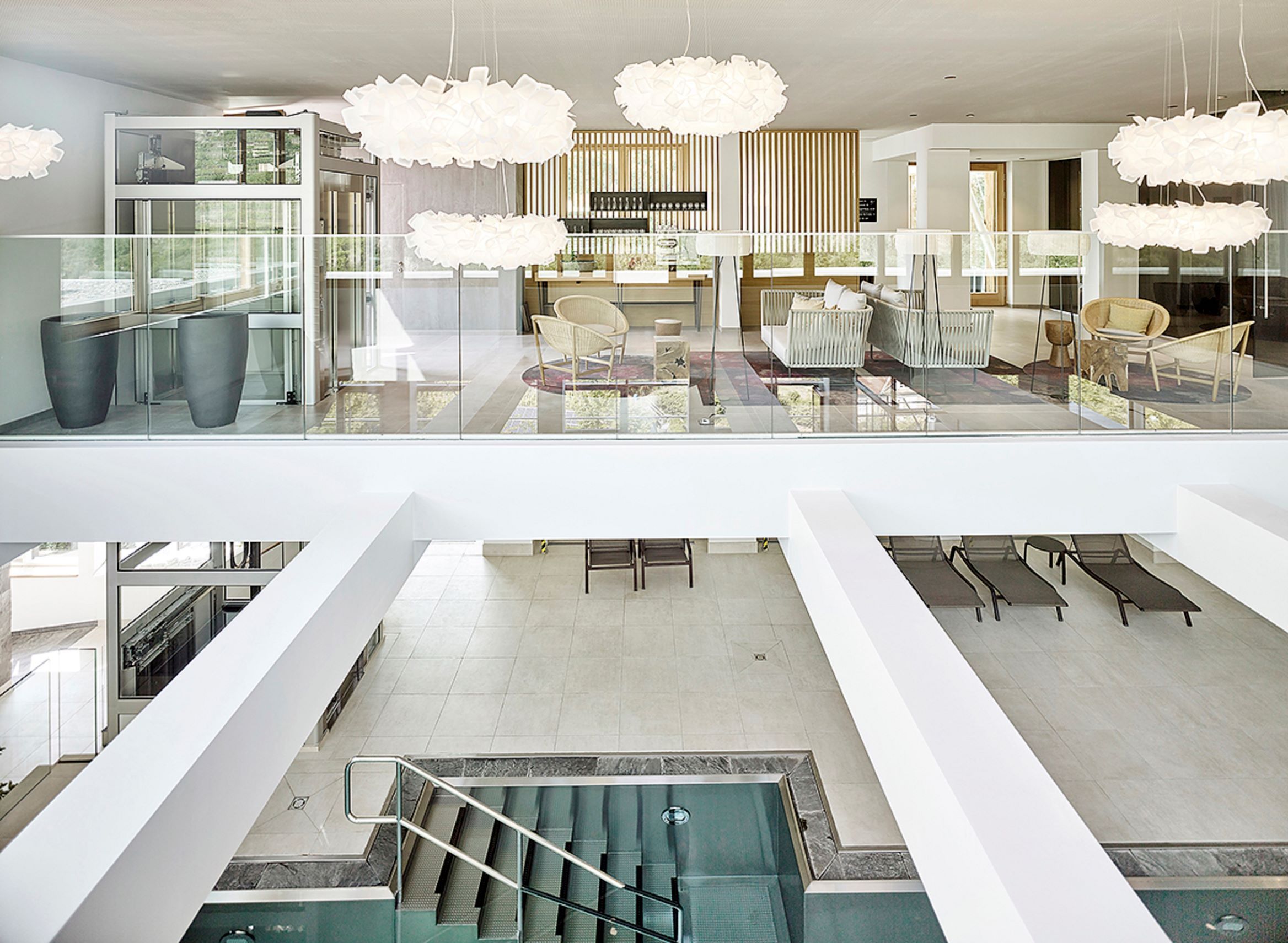 Ein Highlight des Hotels ist der großzügige Spa-Bereich auf 3.000 m², verteilt auf drei Ebenen. Hier erwarten Gäste Innen- und Außenpool, Saunen, Dampfbäder, Ruhebereiche mit Kamin und ein umfangreiches Programm an Behandlungen. Wellness, Entspannung und Wellness-Genuss sind zentrale Bestandteile des Aufenthalts.