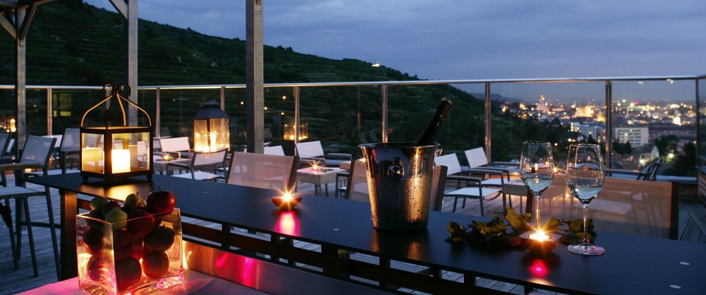 Inmitten der sanft ansteigenden Weinberge oberhalb von Krems liegt das Steigenberger Hotel & Spa Krems, ein elegantes Rückzugsrefugium mit Blick über das Donautal und das historische Stadtzentrum.