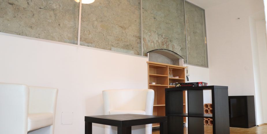 Eingebettet in das Ensemble Rathausplatz befindet sich das historische Gebäude, welches auch das Apartment Stifts-Suite umfasst. Das Apartment grenzt an der historischen Palasmauer des 12. Jahrhunderts – diese ist im Tee- und Bibliotheksraum sichtbar und gibt der Stifts-Suite eine einzigartige Atmosphäre. Das Klosterneuburger Stift ist ebenfalls direkt angrenzend und lädt zu einem Spaziergang durch das Areal oder einer Besichtigung ein.
