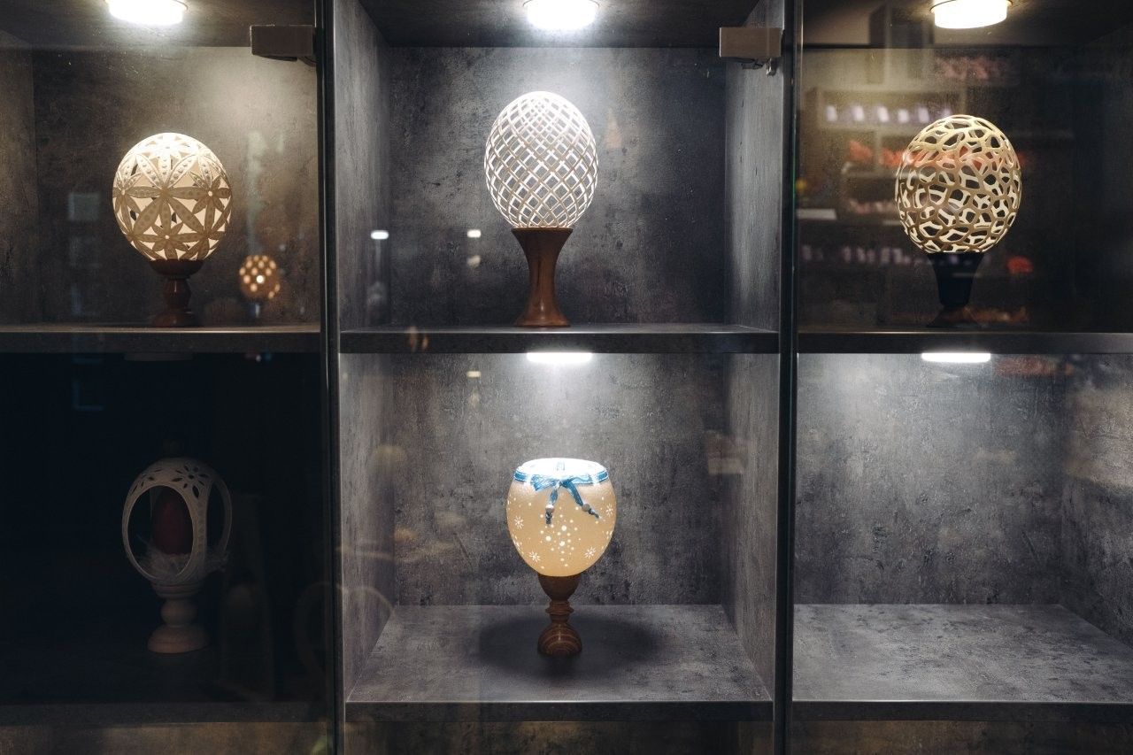 Schlafen im 70 m2 großen „Straußennest“, eingebettet von unzähligen Straußeneiern, verzaubert vom einzigartigen Licht der Straußeneierlampen - ein Erlebnis der besonderen Art!