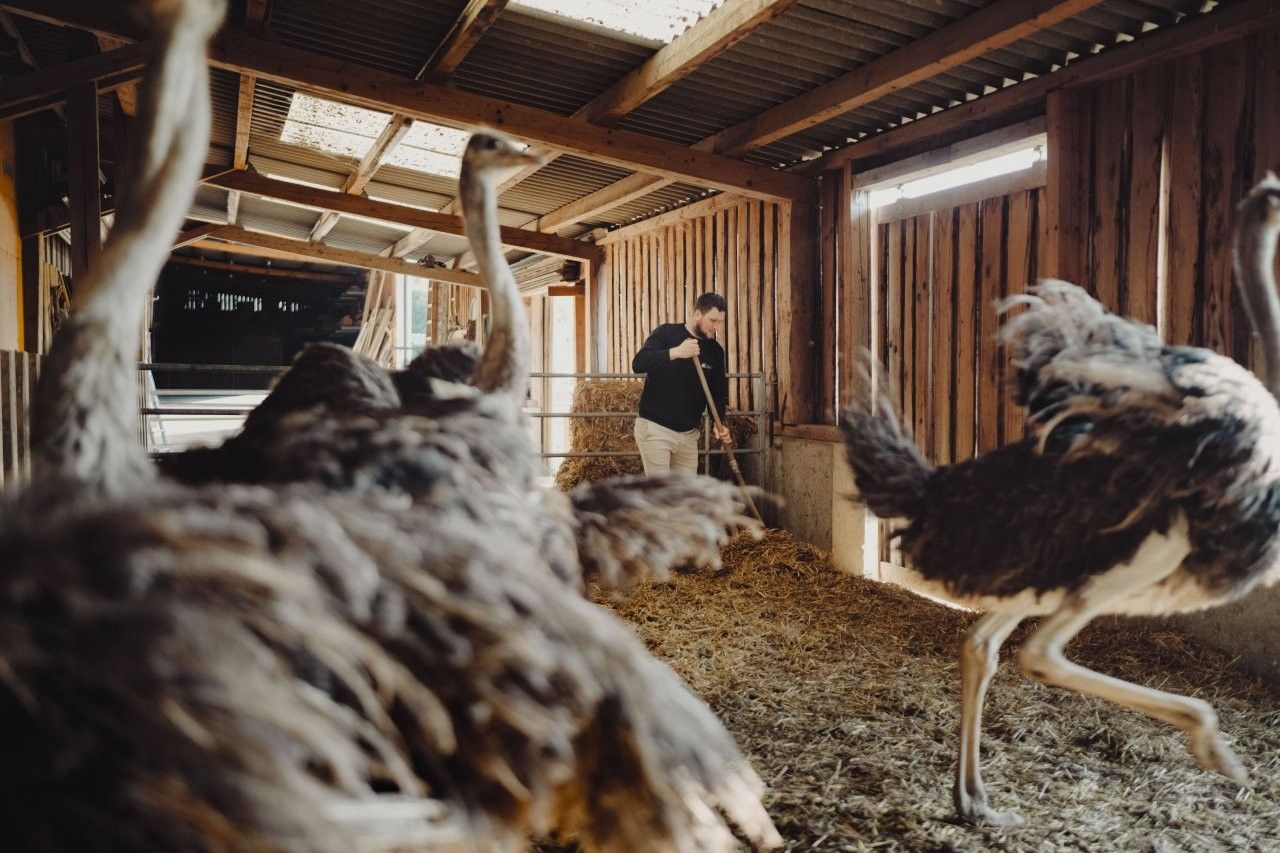 1994 startete Familie Ebner mit drei Straußenkücken ihre Straußzucht, die sie auf seitdem 16 Legestrauße und einige Masttiere aufgestockt haben. Der Großteil der österreichischen Straußenzüchter hat sich auf die Fleischproduktion spezialisiert. Bei den Ebners liegt der Schwerpunkt seit Beginn bei der Eierproduktion. Sie verwandeln die Straußeneier in wahre Kunstwerke vom Lampenschirm bis zum durchbrochenen Ei. Jede Lampe ist ein Unikat und wird am eigenen Hof erzeugt. Sie sind "die Adresse“ für leere und volle Straußeneier, z. B: für eine Party oder eine Straußeneierspeise. Ein weiterer Nebenerwerb wurde auch der Tourismus, da auf dem Hof auch Führungen angeboten werden.