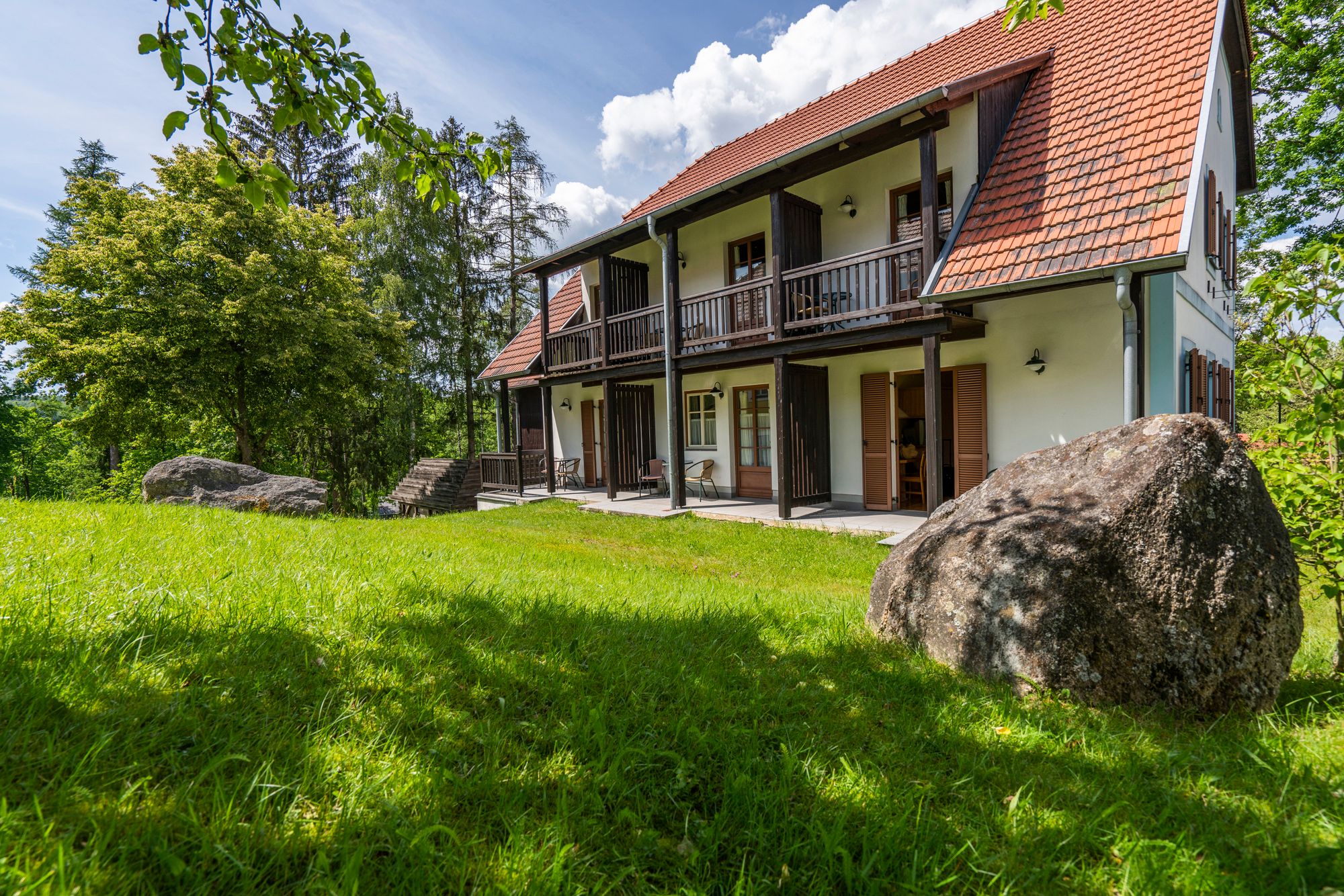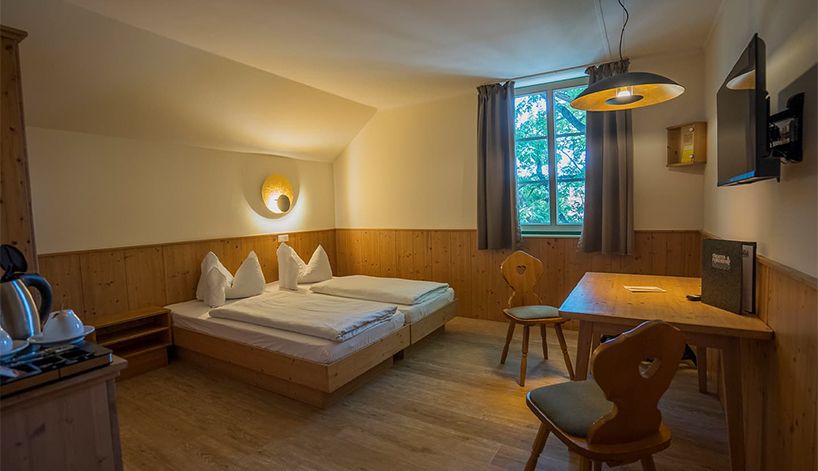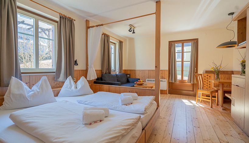 Die liebevoll eingerichteten Hotelzimmer im Haupthaus sowie unsere kleinen Studios, mittleren Apartments und großen Wohnungen, eingebettet in typische Waldviertler Dreiseithöfe, bieten viel Platz für Ihre Bedürfnisse. Das Restaurant direkt im Dorf im gemütlichen Flair ist ein weltoffener Ort mit Kamin und kleiner Bibliothek, das zwei Bühnen und zwei Extrastüberl bereithält. Eines ist gewiss: Das Theater- und Feriendorf Königsleitn garantiert die komplette Infrastruktur für einen inspirierenden Aufenthalt mit Wohlfühlfaktor.