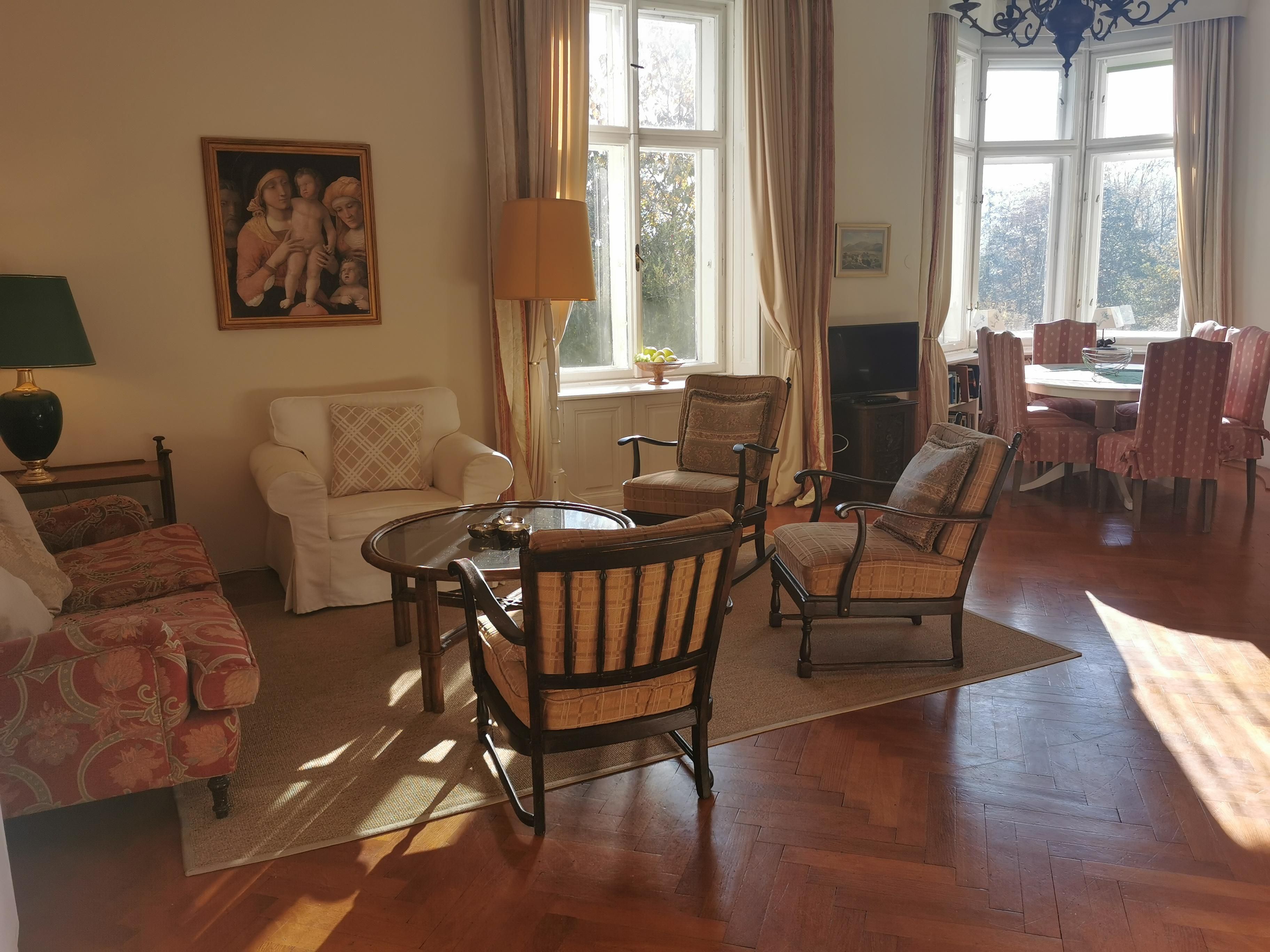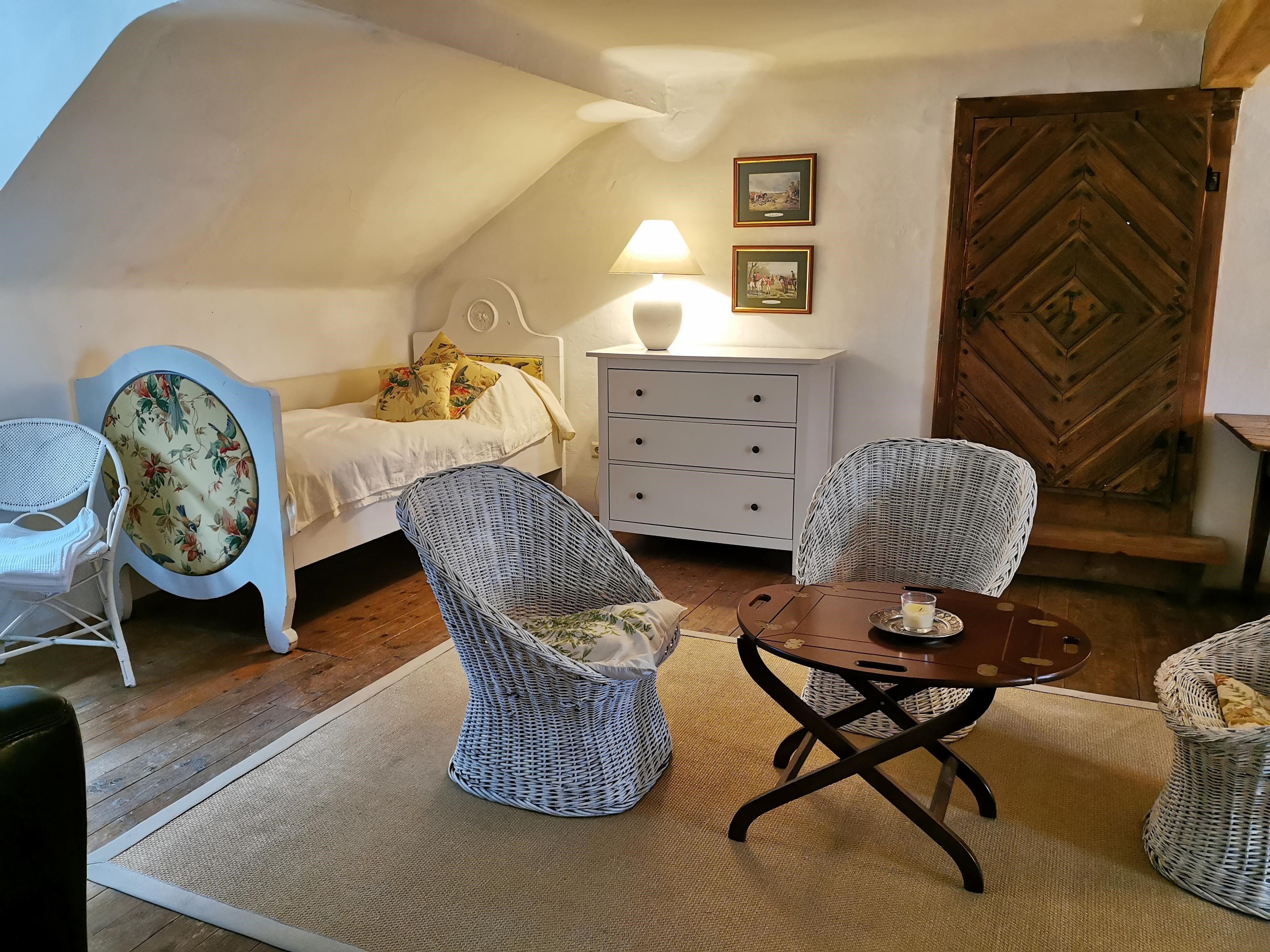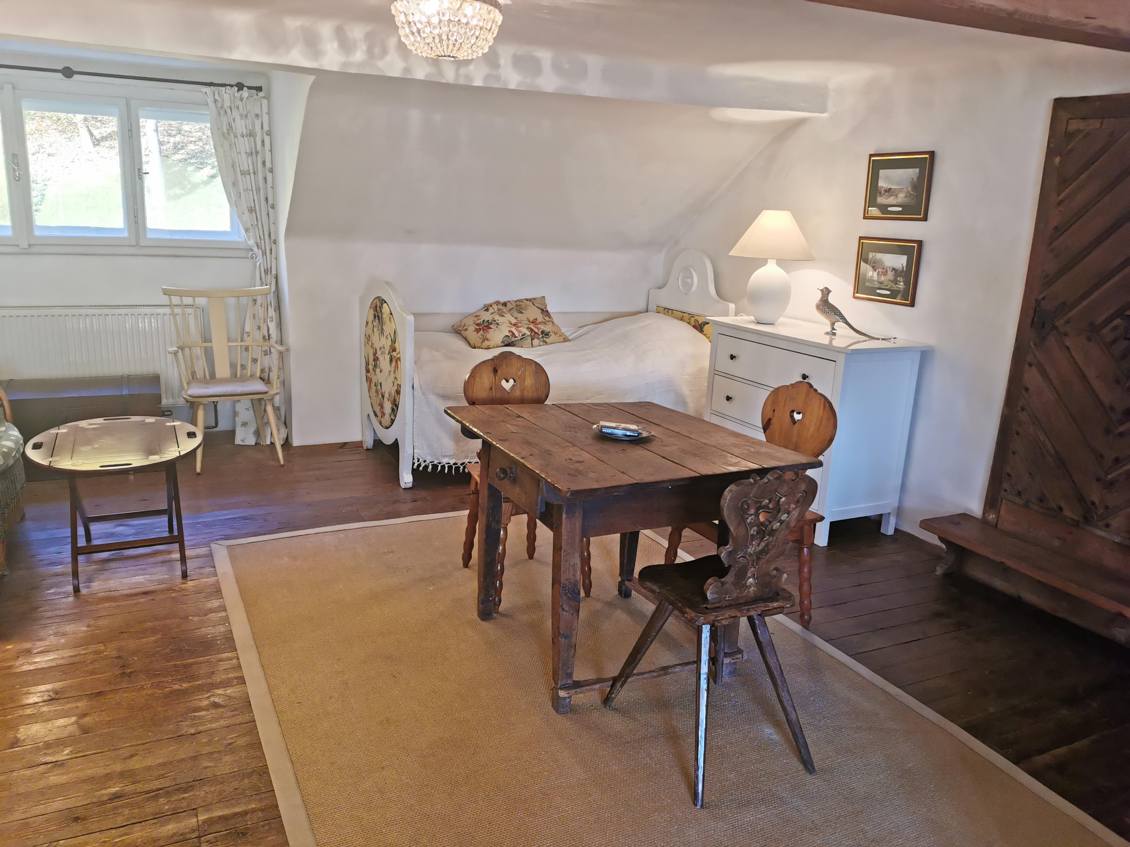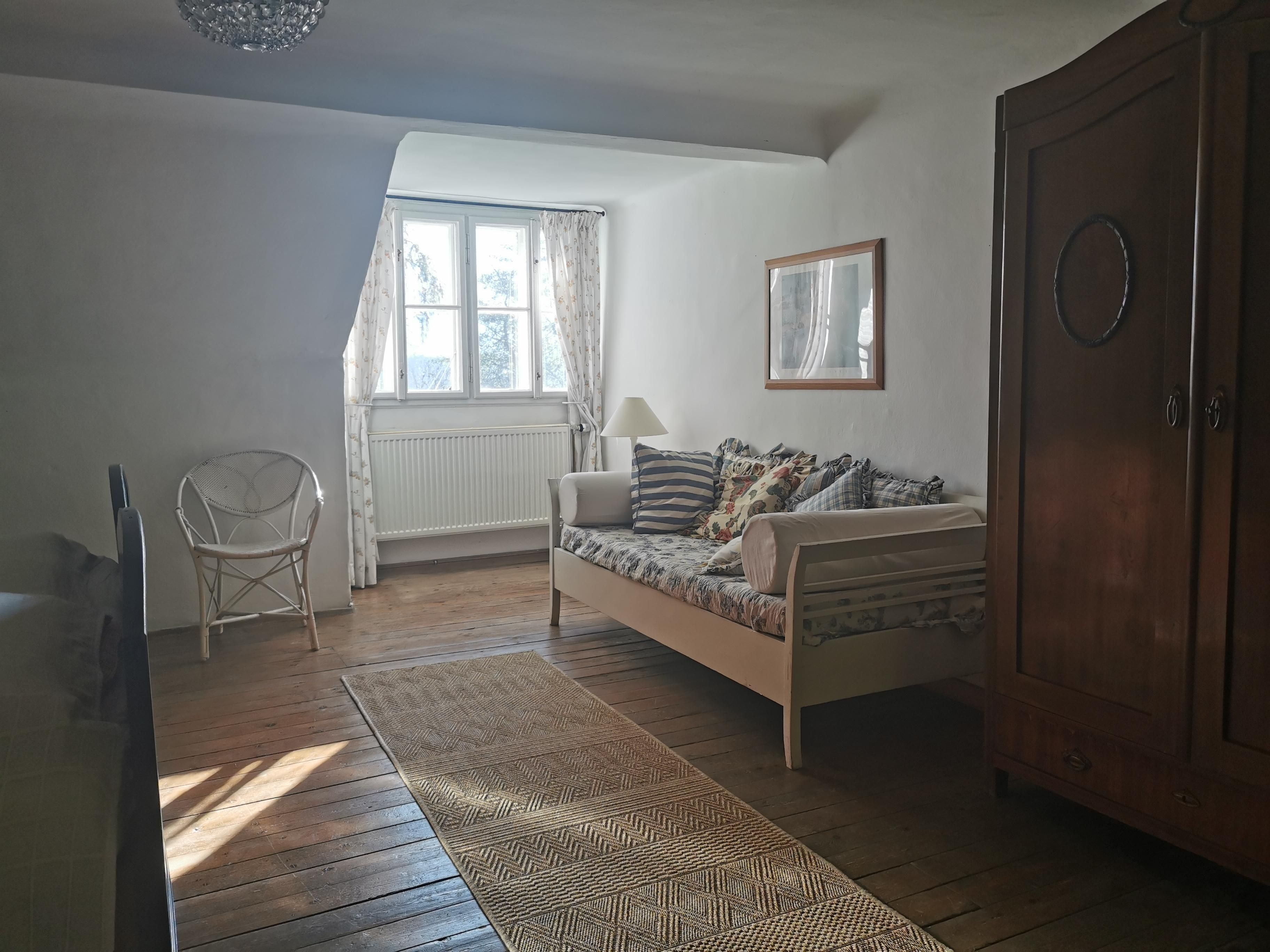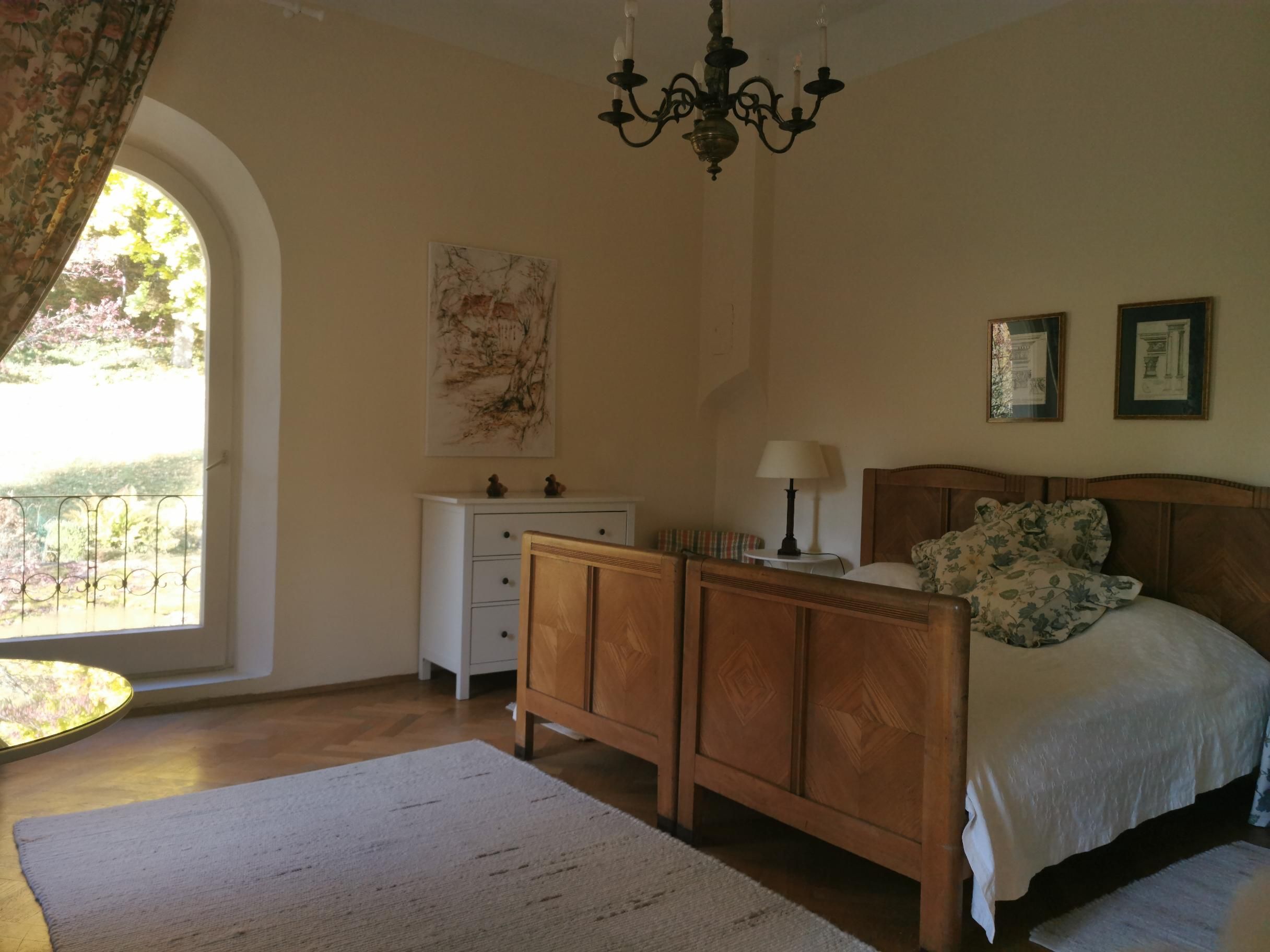 Im Obergeschoß der Villa befinden sich zwei geräumige Ferienwohnungen, die für unterschiedlich große Gästegruppen geeignet sind. Das Apartment Gartenblick verfügt über zwei Schlafzimmer mit je einem Doppelbett. Im Apartment Balkon gibt es ein Doppelzimmer sowie ein Mehrbettzimmer für bis zu vier Personen. Daher eignet es sich als Unterkunft für bis zu sechs Personen.