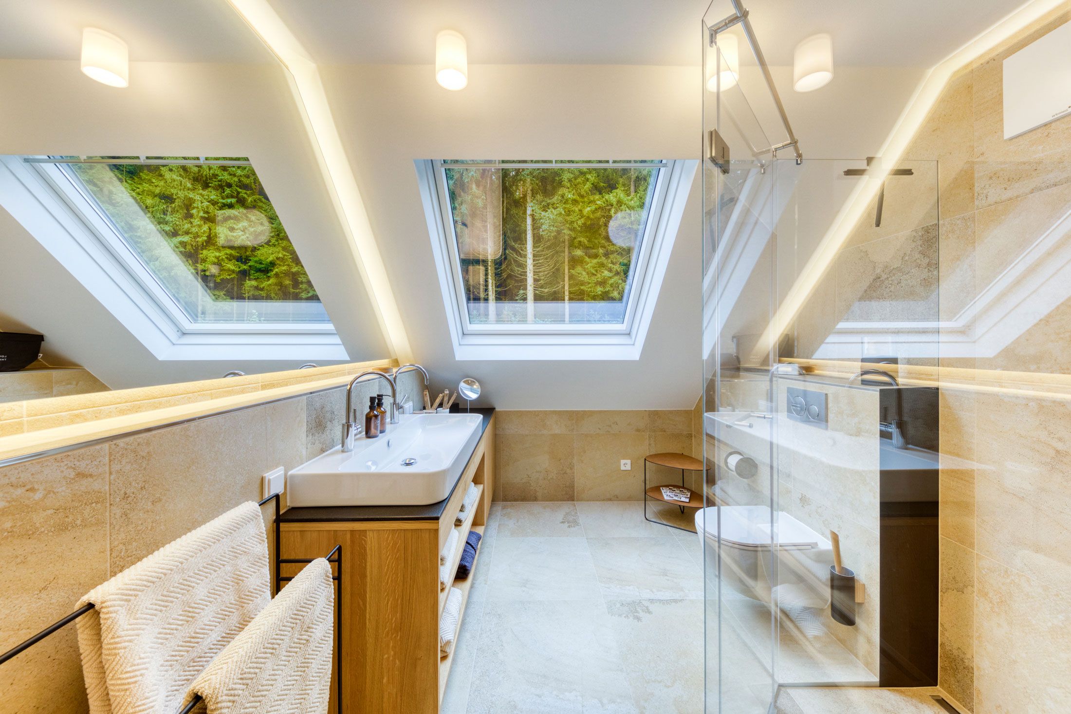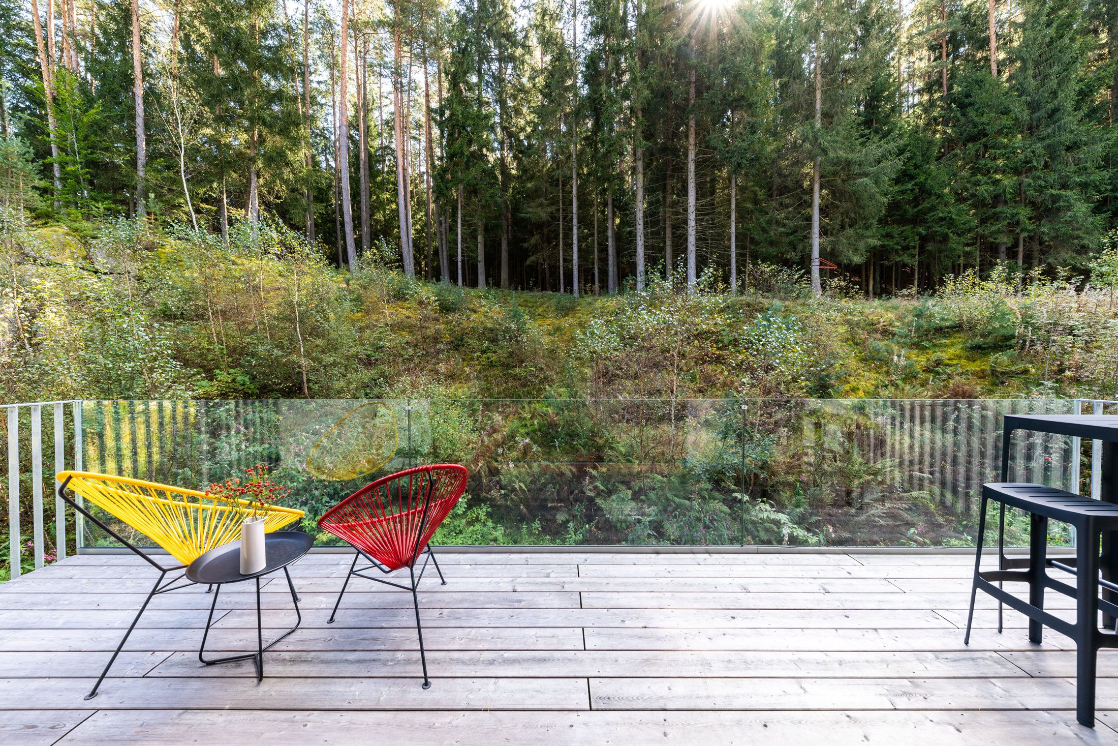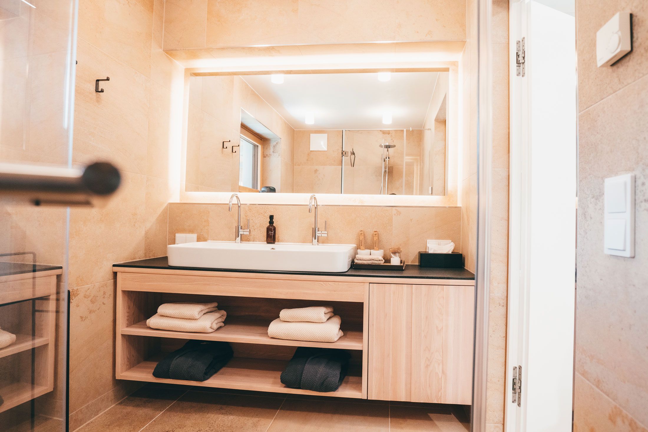 Wählen Sie zwischen zwei Apartments. 140 oder 90 Quadratmeter groß. Modern und voll ausgestattet, mit individuellen Möbeln und Kunst aus der Privatsammlung. Sie können Apartment 01 und Apartment 02 einzeln buchen oder gemeinsam. Zu beiden gehören großzügige private Terrassen und ein Zugang zum gemeinsamen Garten. Ein Klavier für die Muße, eine Feuerstelle zum Grillen, eine erfrischende Dusche mitten im Uttissenbach, der durch das Gartenareal fließt oder ein Buch in der Hängematte zwischen den Waldbäumen lesen…. Im Waldrefugium ist Entspannung garantiert.