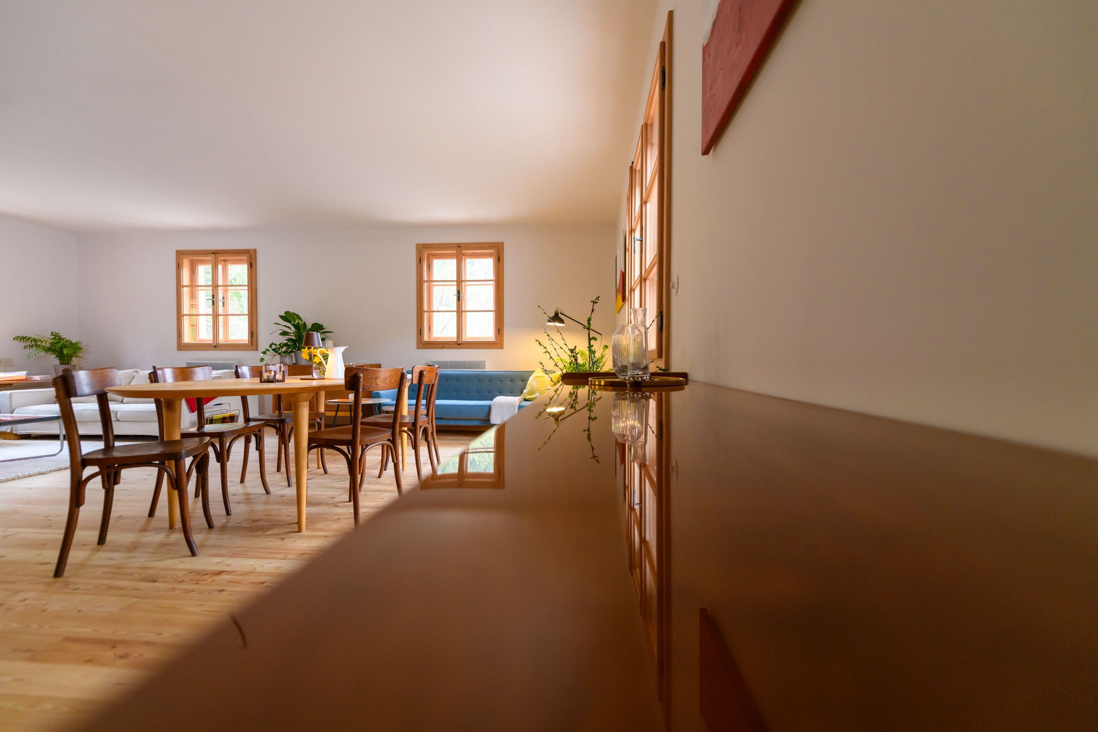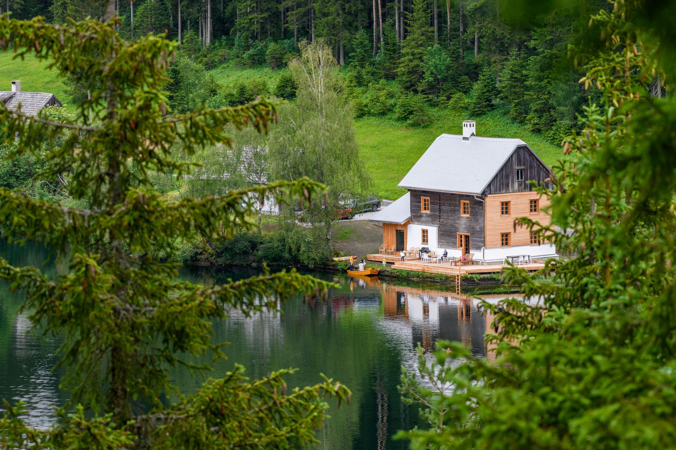 Das Seehaus liegt in der Walster, direkt am idyllischen Hubertussee am Wiener Wallfahrerweg in Richtung Mariazell. Das Seegrundstück hat zwei Badeleitern vom Badesteg in den See, im Winter liegt der meist zugefrorene See direkt vor der Tür und bindet das Haus an die Langlaufloipe Walstern an. Im Haus befinden sich drei Schlafzimmer und ein Badezimmer im Obergeschoss, mit Platz für 6 Erwachsene und 2 Kinder. Im Erdgeschoß sind Sauna mit Ausgang auf den Badesteg, großzügige Küche und Wohnraum, Kachelofen und ein zweites Badezimmer.