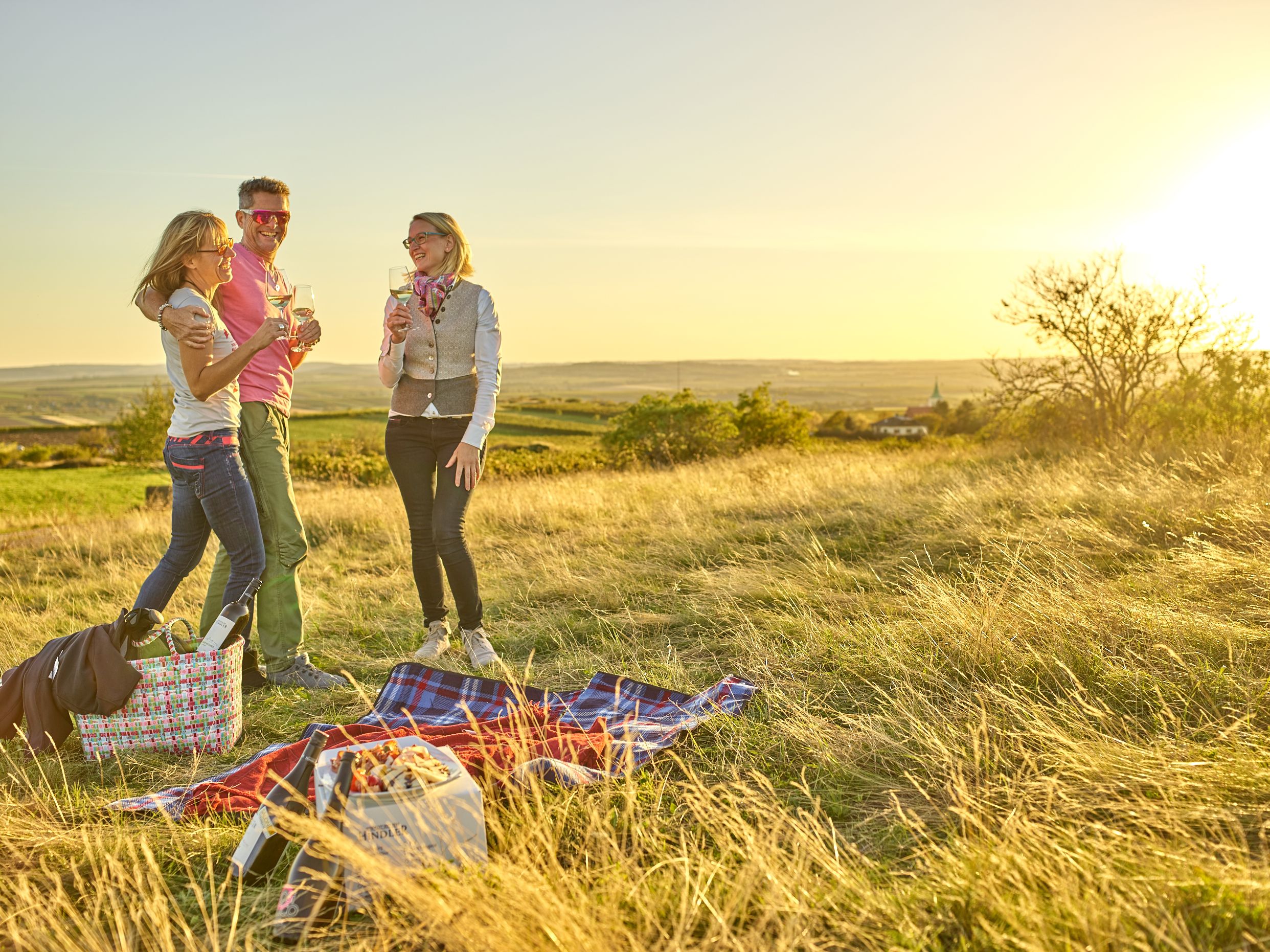 Die drei Kellerstöckl – Hüttenberg, Kalvarienberg und Öhlberg – bieten Platz für zwei bis sechs Personen. Hochwertige Boxspringbetten, eine gemütliche Küche mit Nespresso-Maschine und ein Weinklimaschrank mit feiner Auswahl gehören ebenso zur Ausstattung wie WLAN und TV. Auch 3 E-PKW Ladestationen sind für die Gäste verfügbar. Für Aktive gibt es E-Bikes zum Ausleihen, einen absperrbaren Fahrradkeller und sogar eine Waschmaschine für die Sportwäsche. Wer lieber genießt, kann im Erlebniskeller beim Wein.Kegeln mitmachen, im Infrarot-Studio entspannen oder in der lauschigen Weinlaube grillen. Besonders stimmungsvoll ist der Sonnenuntergang bei der Hiata Hütte in der Riede Kalvarienberg – ein Ort zum Verweilen mit Blick auf die Weingärten. Das ganze Jahr über buchbar, laden die Kellerstöckl dazu ein, das Weinviertel in seinem eigenen Rhythmus zu erleben.