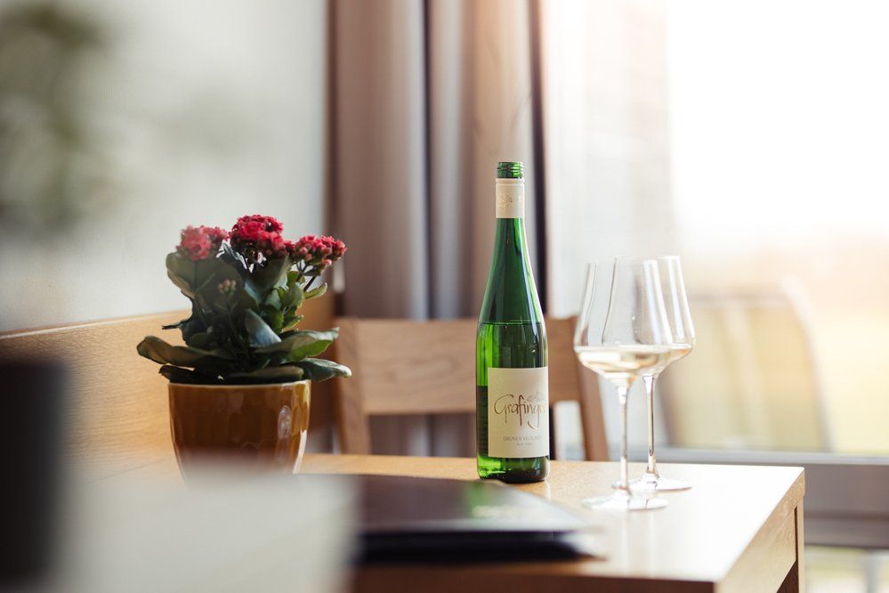 Ergänzt wird das Angebot durch einen hauseigenen Heurigenbetrieb, der mit regionalen Köstlichkeiten und saisonaler Küche begeistert. Die Weine aus dem qualitätsorientierten Weingut Grafinger runden das Genusserlebnis ab und können direkt vor Ort verkostet oder erworben werden.