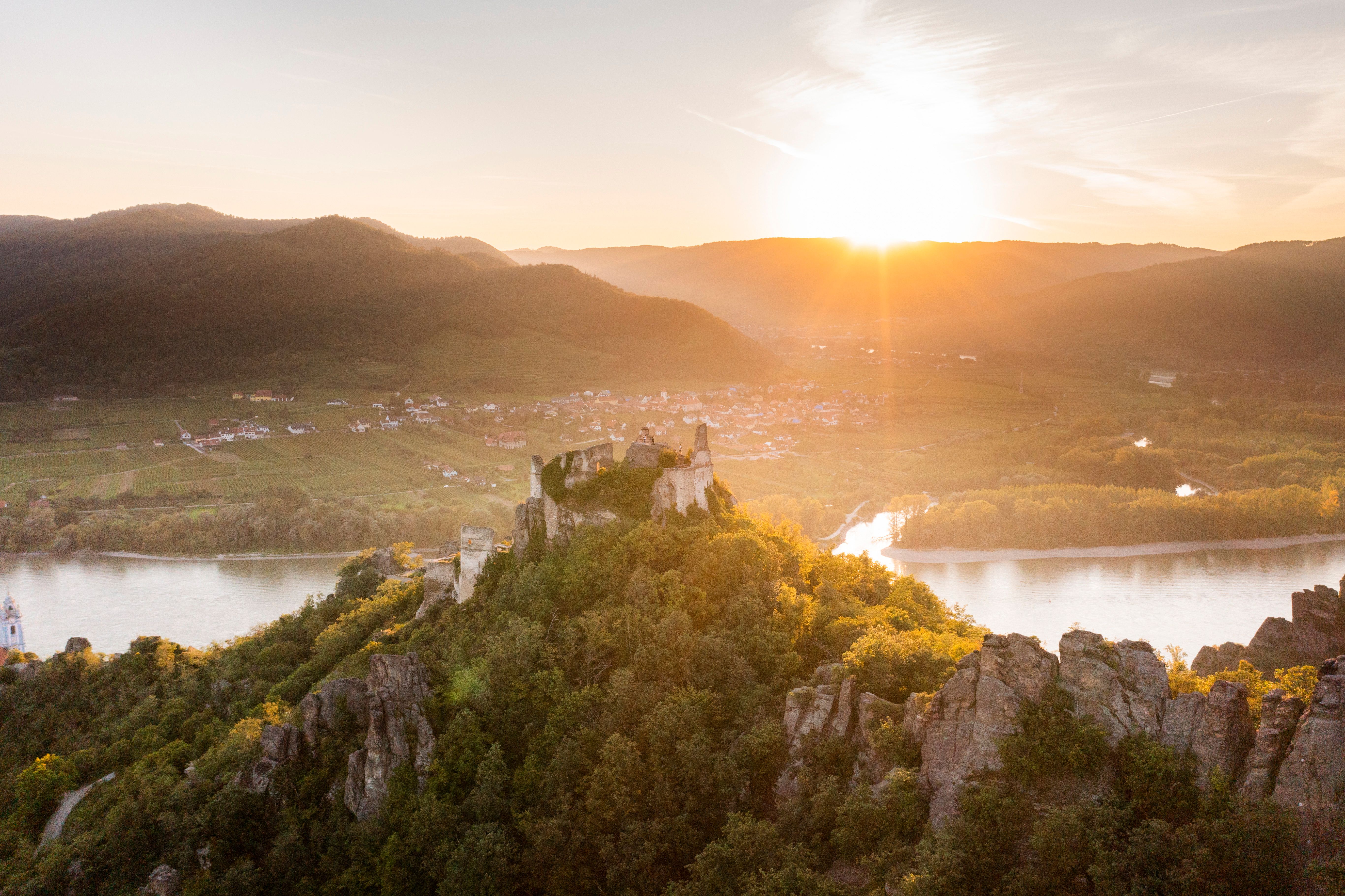 Im Frühling verwandelt die Marillenblüte die Landschaft in ein Meer aus Weiß und Rosa, im Sommer locken Radtouren und Zillenfahrten, der Weinherbst bringt golden leuchtende Weinterrassen, Kellergassen- und Weinfeste und natürlich die Weinlese selbst. Selbst der Winter hat mit Ruhe und klaren Flussblicken seinen Reiz.