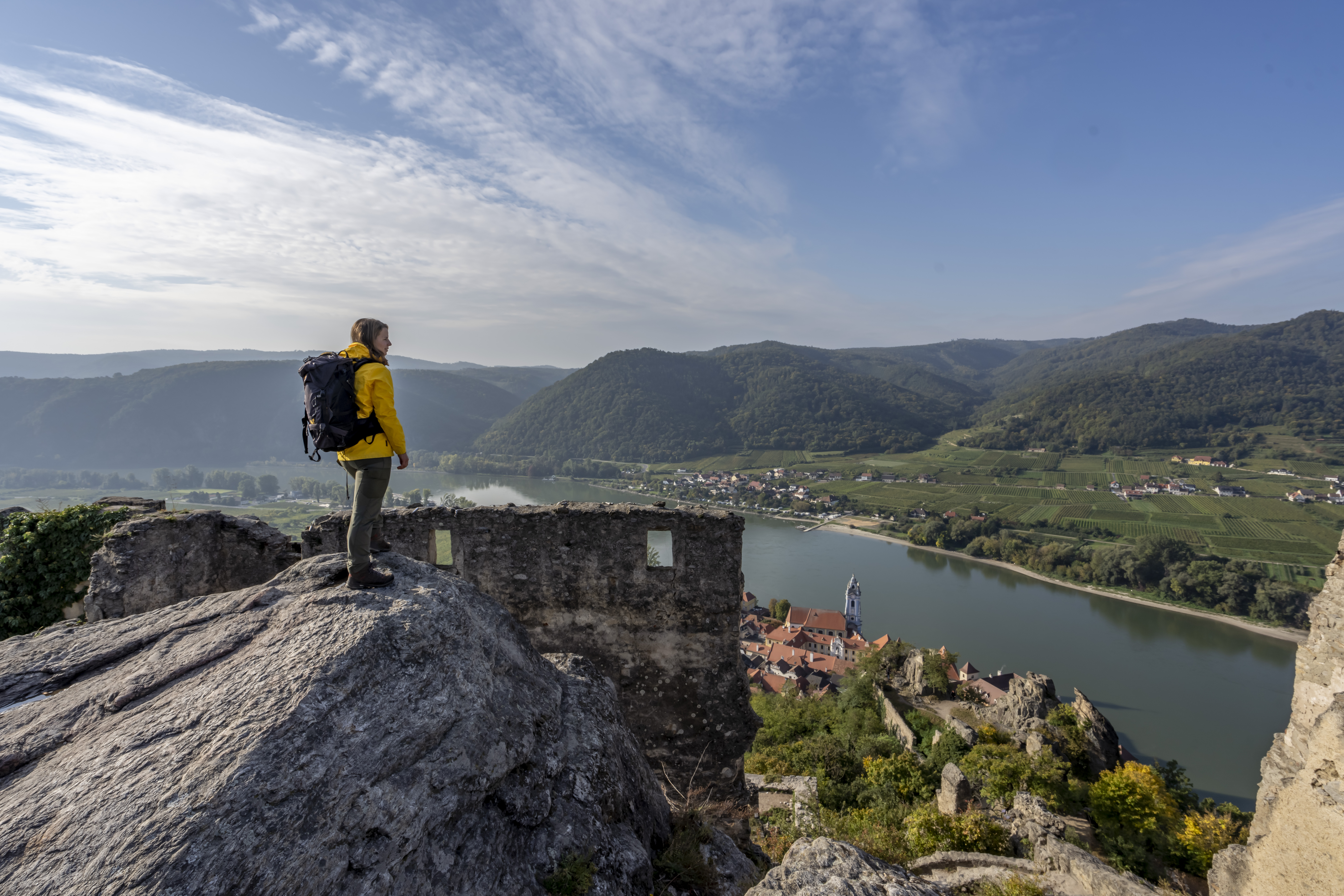 Auf einer Wanderung entlang des Welterbesteigs Wachau nimmt sie uns mit auf eine Zeitreise – von der Altsteinzeit über Mittelalter und Barock bis zur Neuzeit.