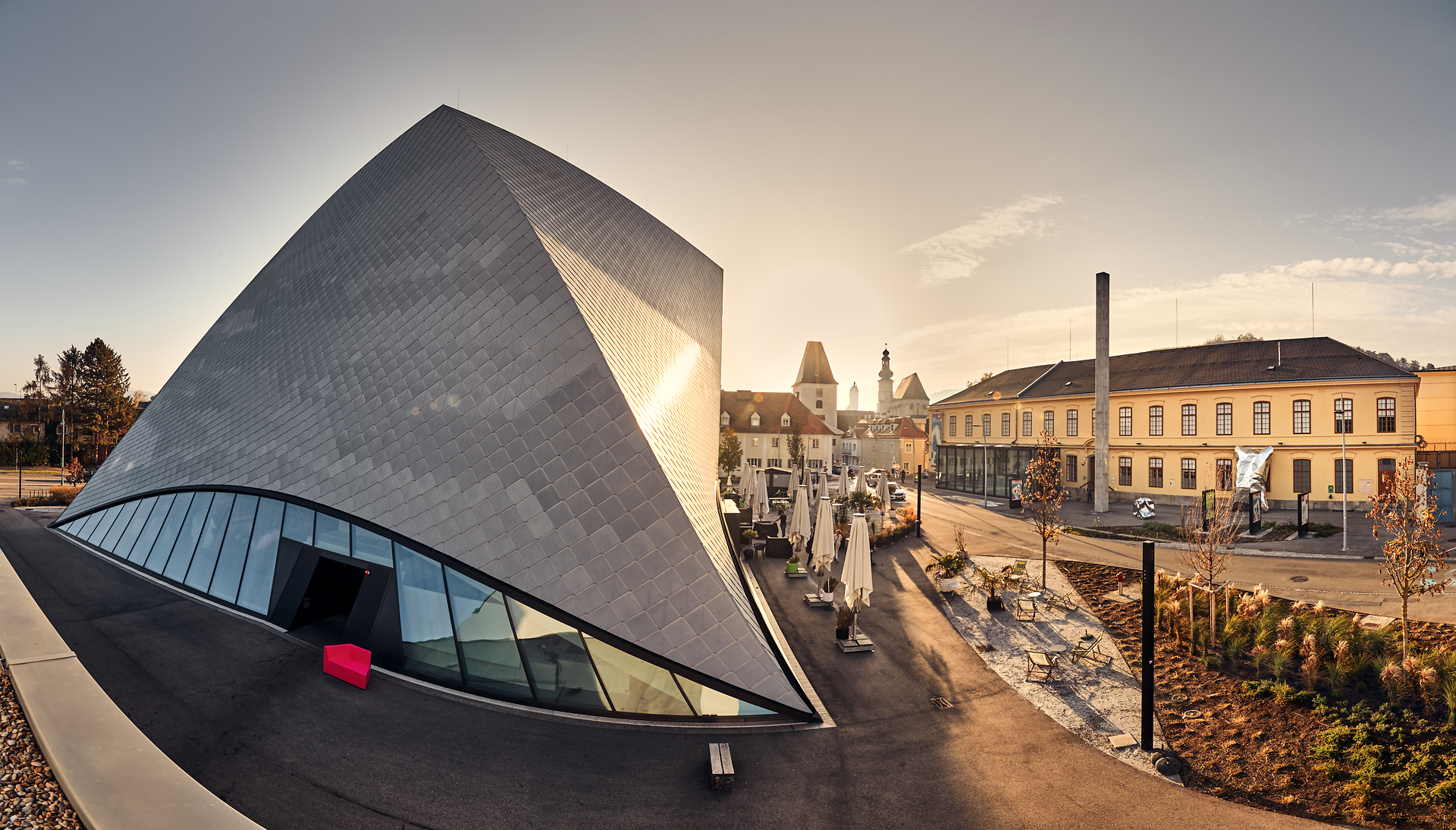 Ein Gebäude aus dem Hier und Jetzt. Es ist Teil der Kunstmeile Krems und sticht als markantes Bauwerk hervor. Ins Auge sticht die dynamische Form des Gebäudes, ein sich in die Höhe schraubender Monolith, ein gedrehter Pyramidenstumpf, der sich vom historischen Stadtkern zur Donau streckt. Die große Terrasse bietet einen herrlichen Blick zur Donau, zum gegenüberliegenden Stift Göttweig sowie zur Altstadt von Stein. Das Museum ist das neue Zuhause für die wertvollen Kunstschätze des Landes Niederösterreich. Die Landessammlungen Niederösterreich umfassen rund 100.000 Objekte, darunter Meisterwerke vergangener Jahrhunderte und herausragende Werke der Gegenwart.