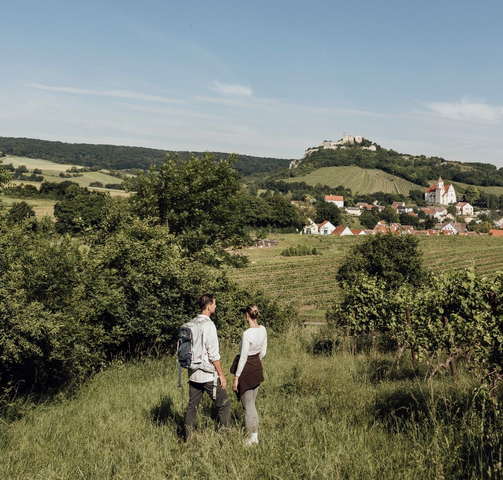 Von Poysdorf, der „Weinstadt Österreichs“, führt die Weinradroute Veltliner durch sanft gewellte Rebenlandschaften, typische Kellergassen und kleine Winzerdörfer. Immer wieder öffnen sich weite Blicke über das Weinviertel – dort, wo der Grüne Veltliner zuhause ist.