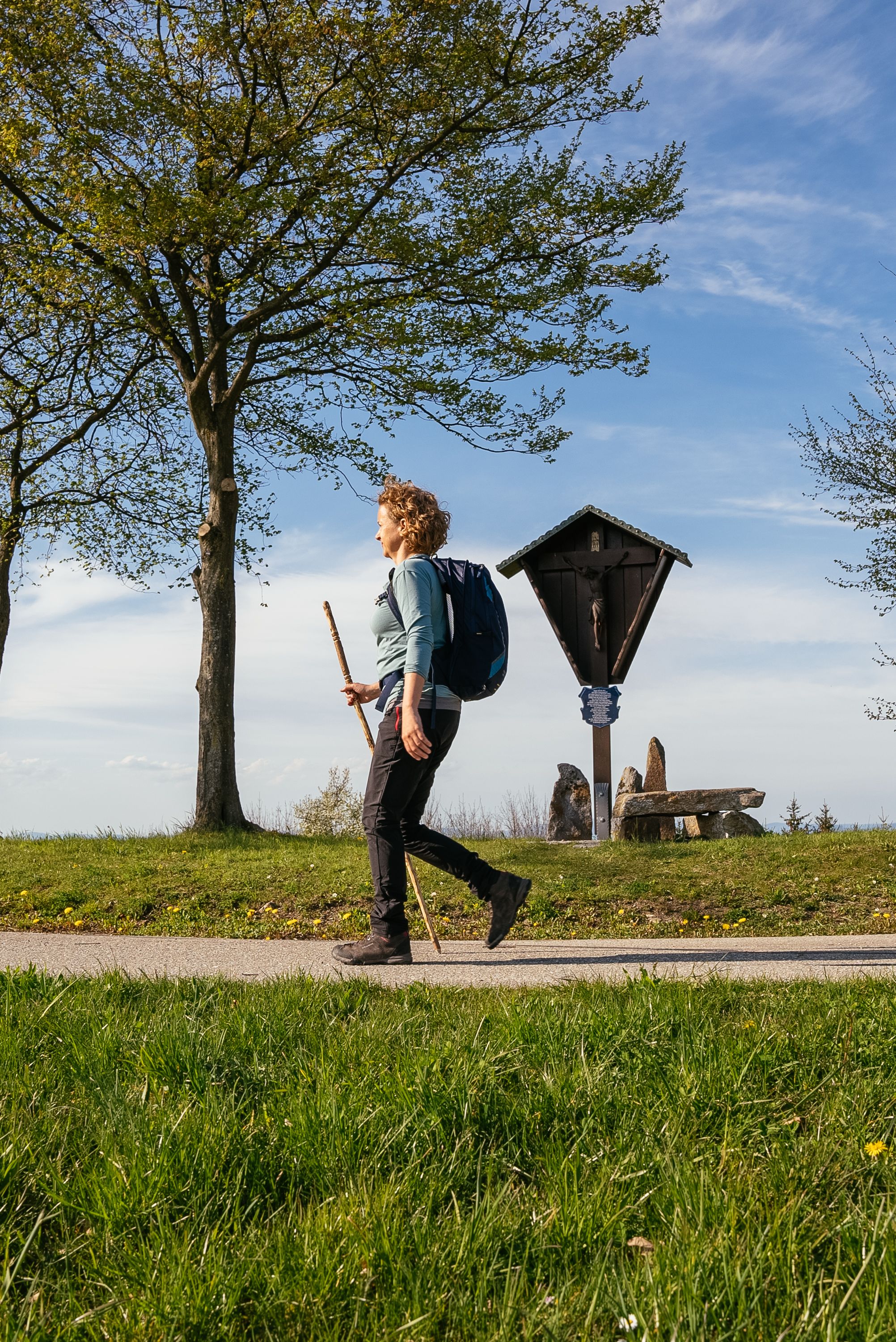 Ob am Gipfel des Vogelsbergs bei Randegg oder auf der Reinsbergrunde mit Ötscherblick, ob bei sakralen Kraftorten wie Maria Taferl oder Sonntagberg oder dem Steinkreis am Haberg – Doris führt ihre Gruppen zu ganz besonderen Kraftplätzen. „Wir sind einfach ein Teil der Natur. Es geht darum, diese ganzheitlich zu fühlen. Die Spiritualität der Elemente zu spüren, die einfachen Dinge wieder wahrzunehmen: Den warmen Sommerwind, oder hin und wieder auch Regentropfen, die einen beim Wandern erwischen. Das Gefühl von eiskaltem Wasser, wenn wir unsere müden Füße bei einer Pause im Bach abkühlen. Den würzigen Geruch des Waldes und den erhebenden Anblick der blühenden Birnbäume im Frühjahr. Wichtig ist, dass man sich beim Gehen wieder darin übt, den positiven Gedanken mehr Raum zu lassen.“ Kombiniert mit einzelnen Yoga-Übungen direkt am Wegesrand, erschafft sie mit ihren Wandergruppen „kleine Oasen, eine kleine Auszeit vom schnelllebigen Alltag“.
